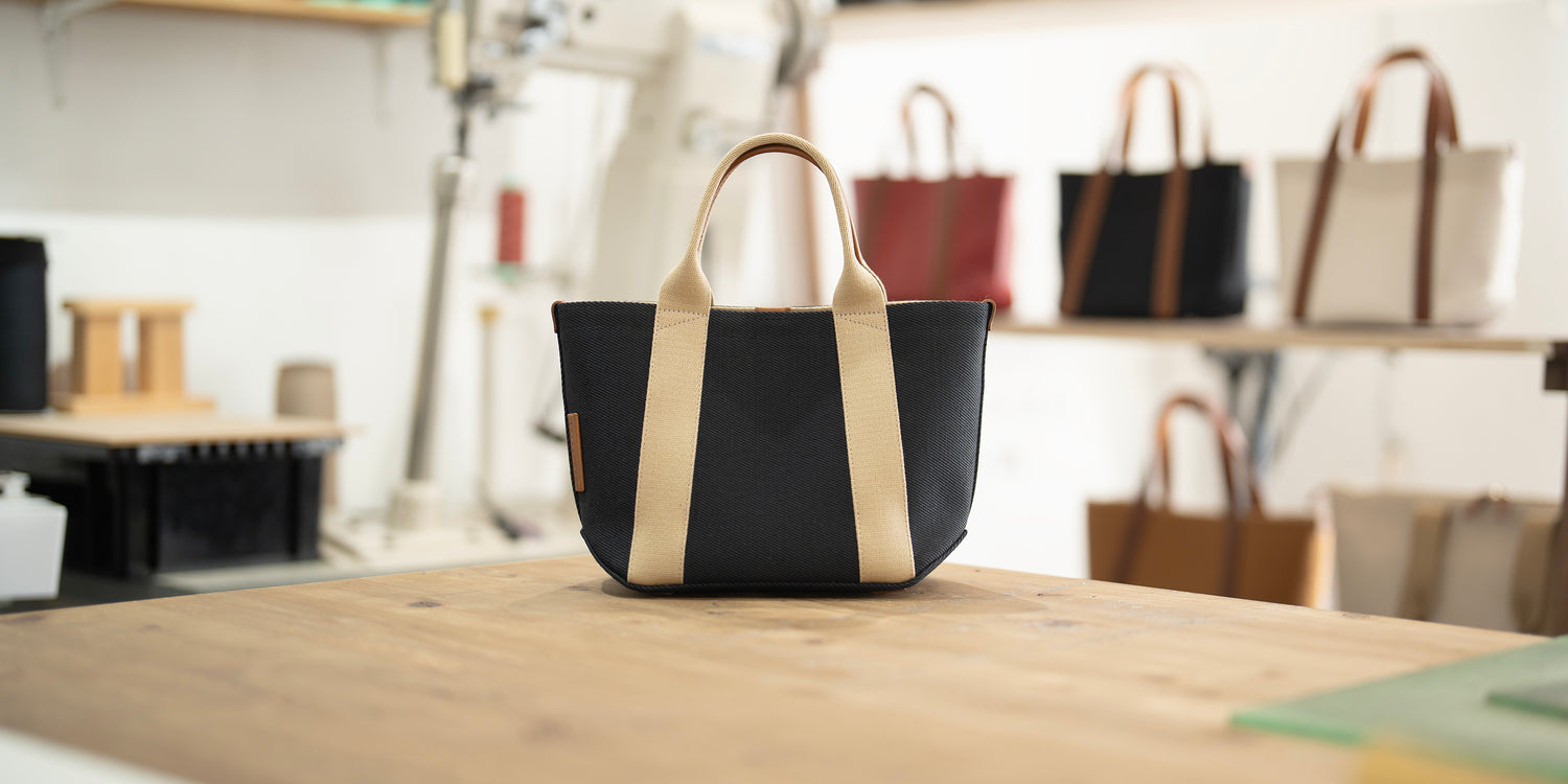 【秋冬限定カラー】倉敷の綿麻帆布とヌメ革で仕立てた 丈夫で軽量なトートS <ブラック×ベージュ>
