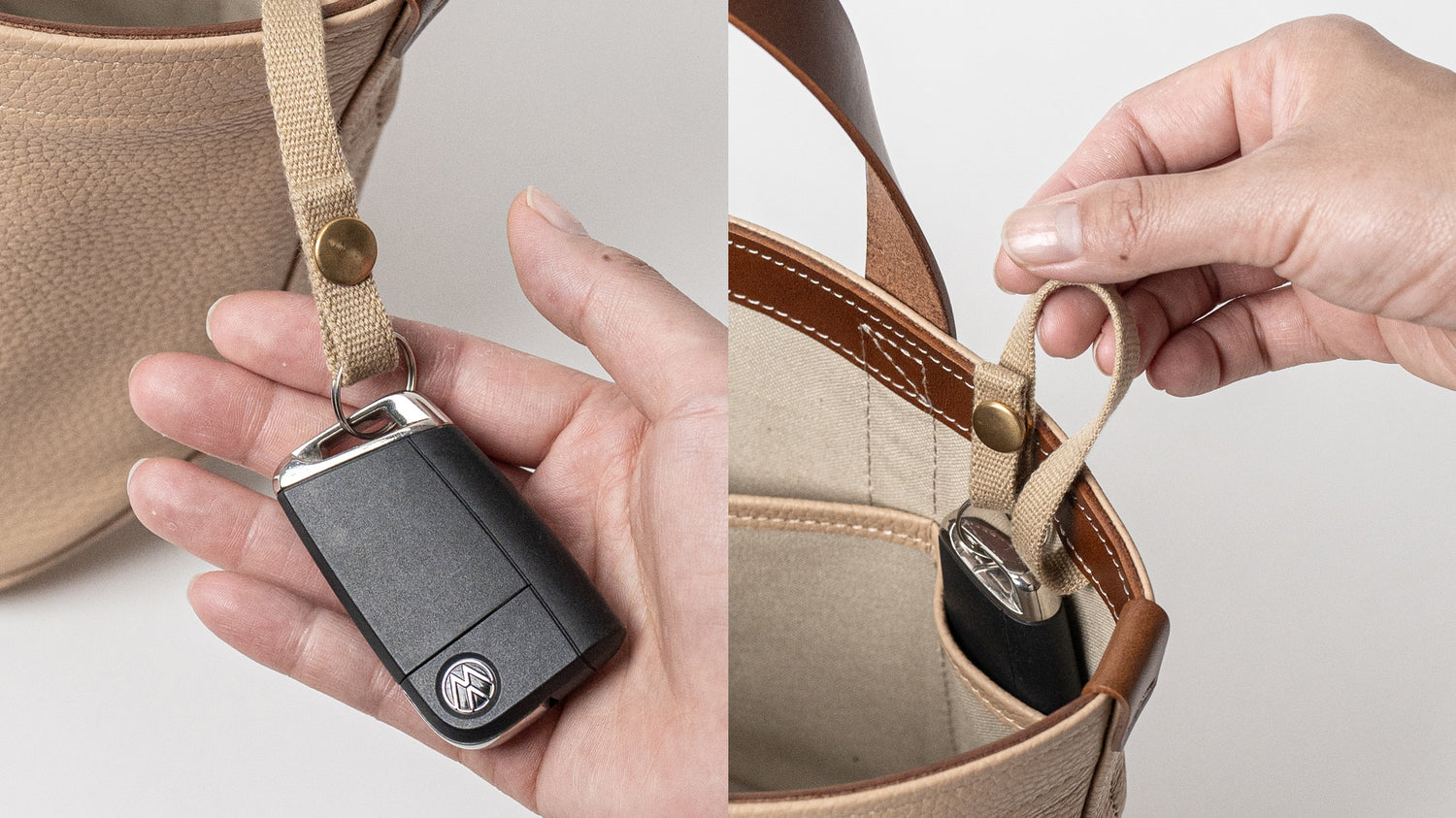 自宅や車のキーを取り付けておけるキーリングも付属。そのままポケットに収納できます。