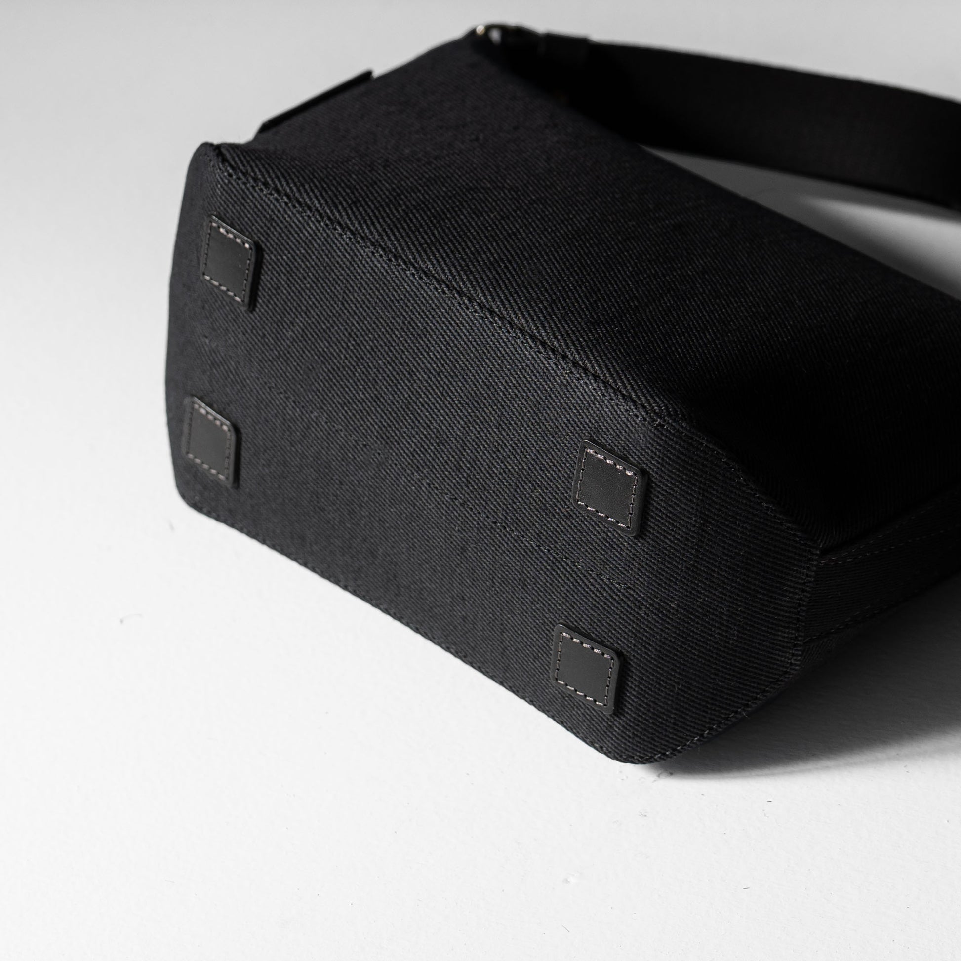 肩にかけるショルダーバッグだからこそベルトにも拘りました。厚みとコシのある日本製アクリルテープを使用することで体にやさしくフィットします。また、一般的なアクリルテープと違い、バッグ本体と同じ綾織にすることで上品な雰囲気が魅力です。