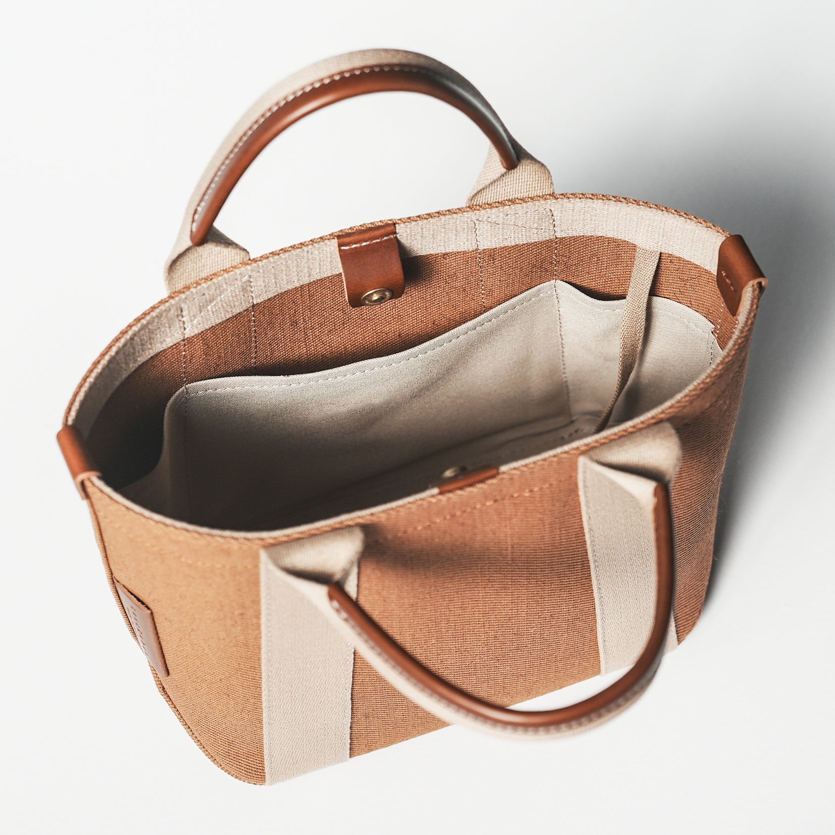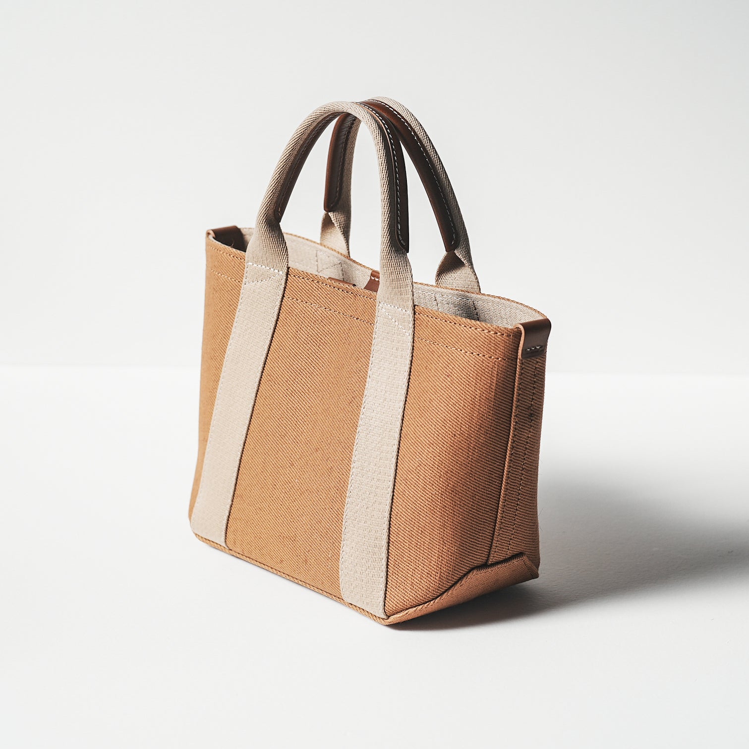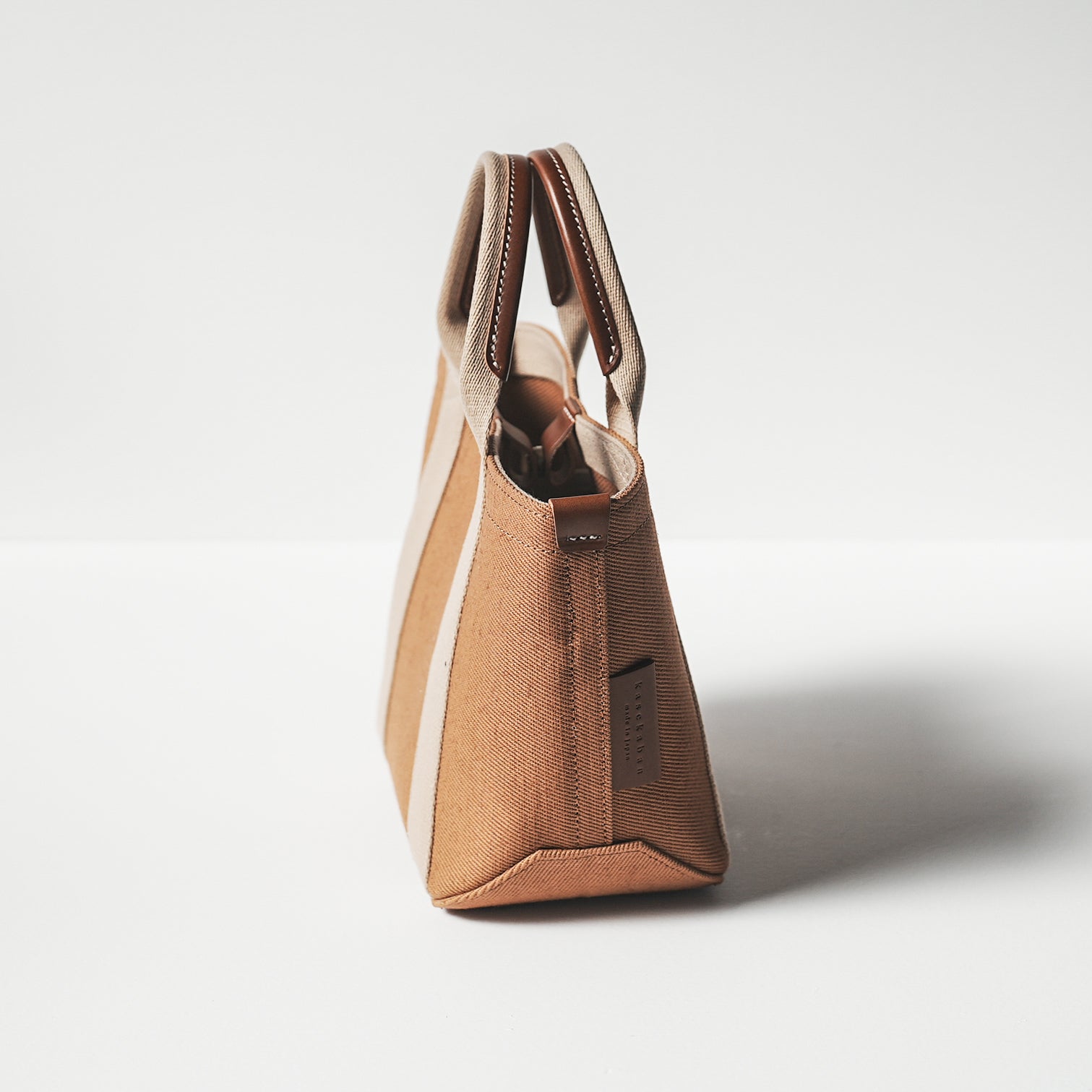 倉敷の綿麻帆布とヌメ革で仕立てた 丈夫で軽量なトートS <キャメル camel>