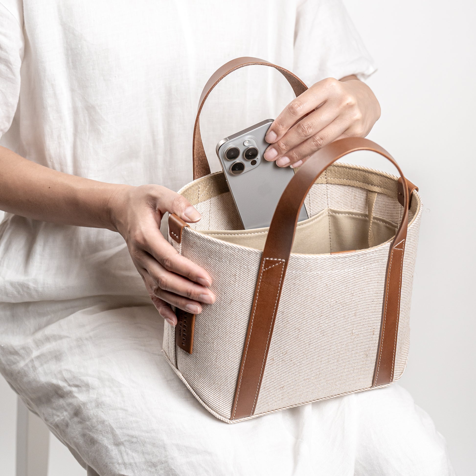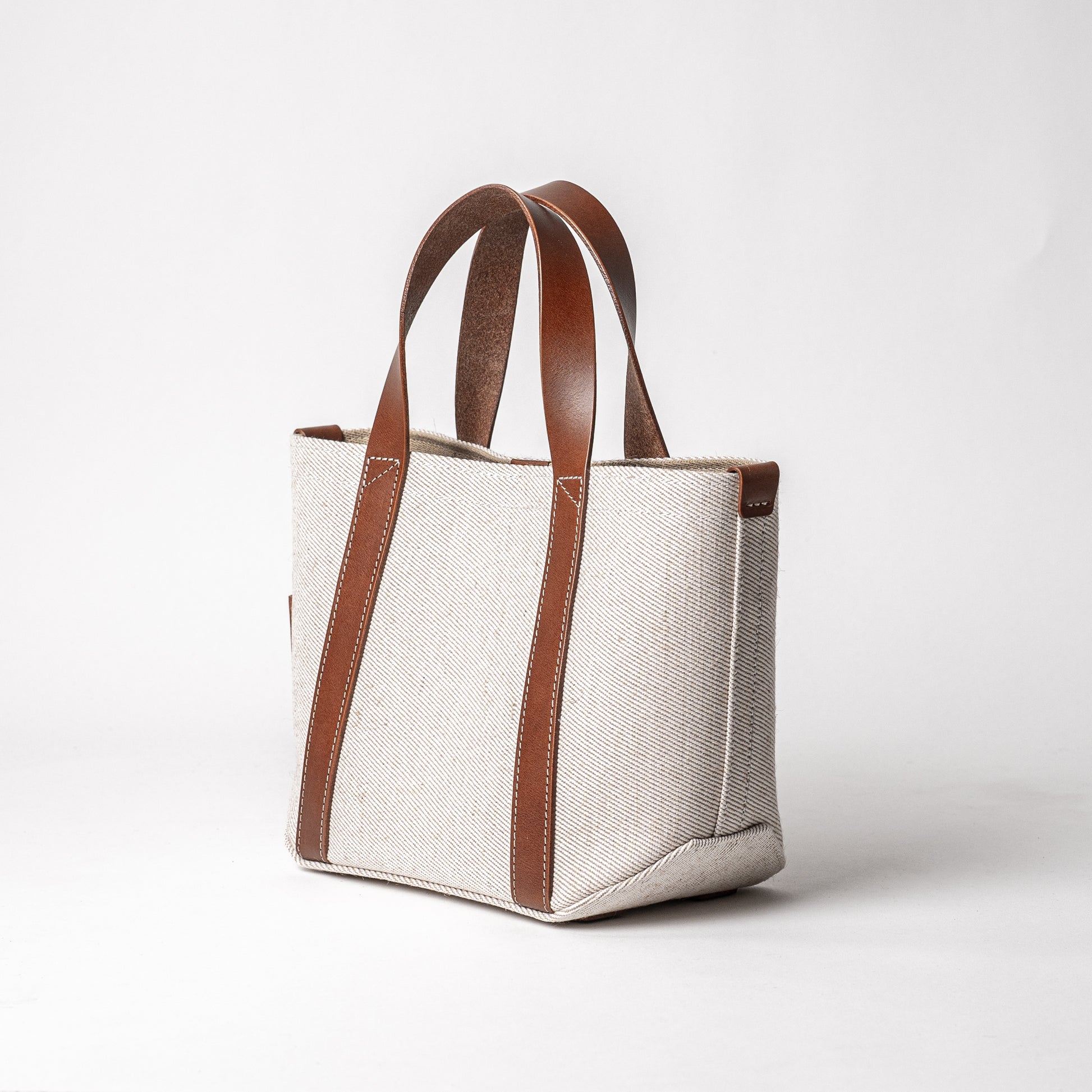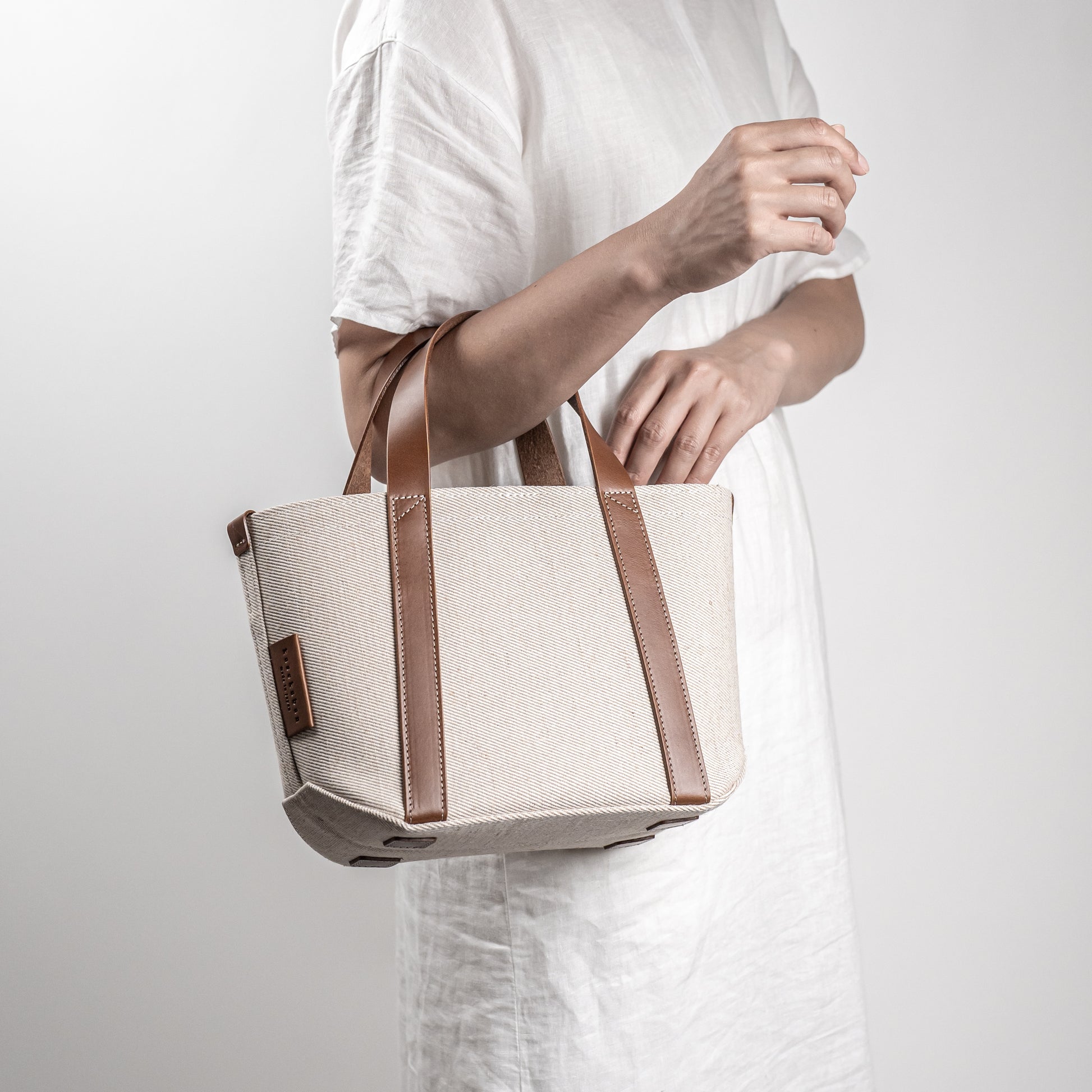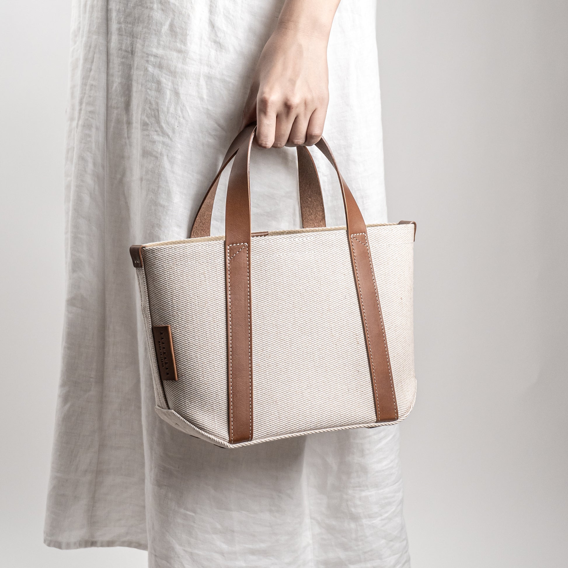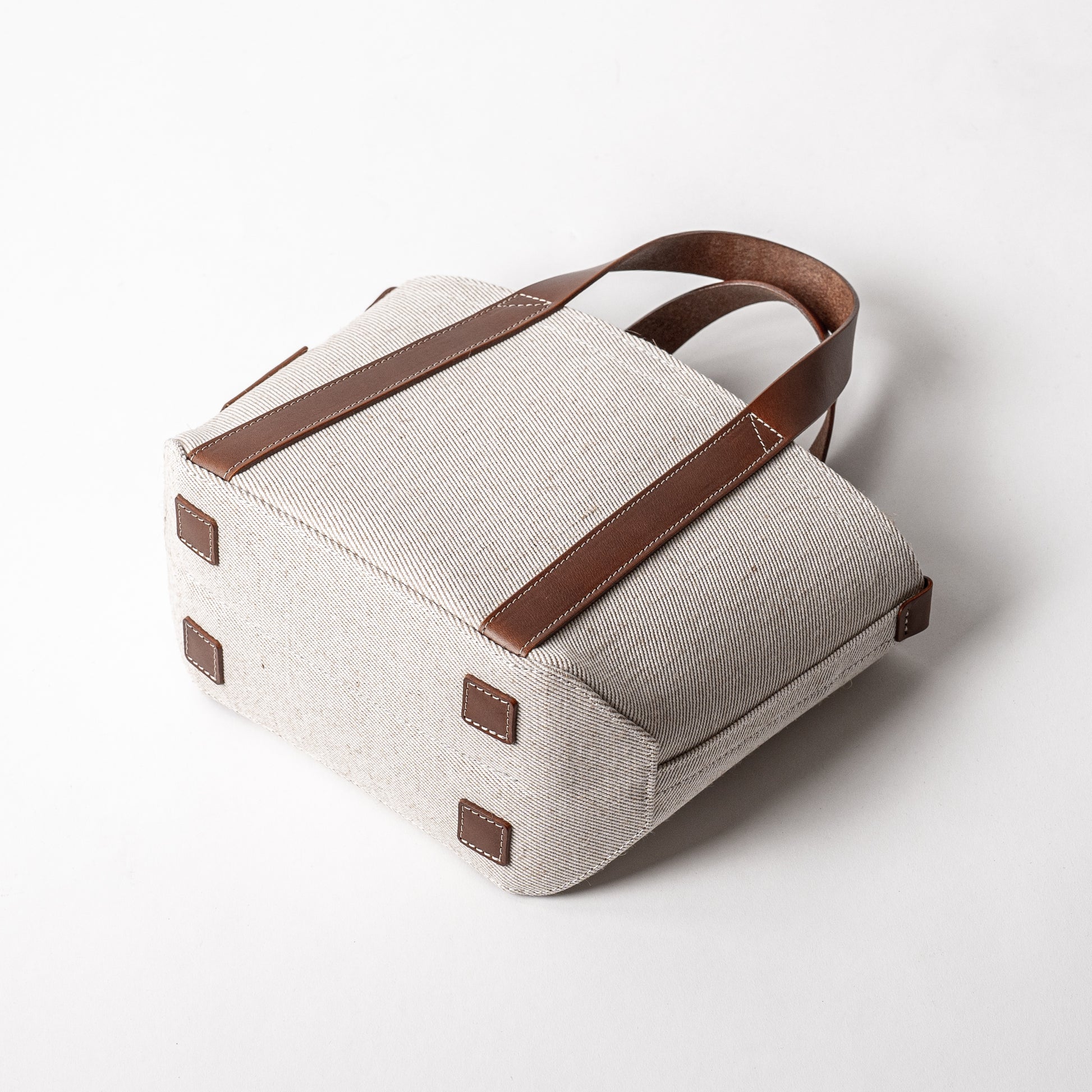 バッグ本体とハンドルで構成されたミニマムなデザインは男女問わずに毎日お使いいただけます。ちょっと変わった底の形状や、ハンドルの三角補強ステッチも魅力です。