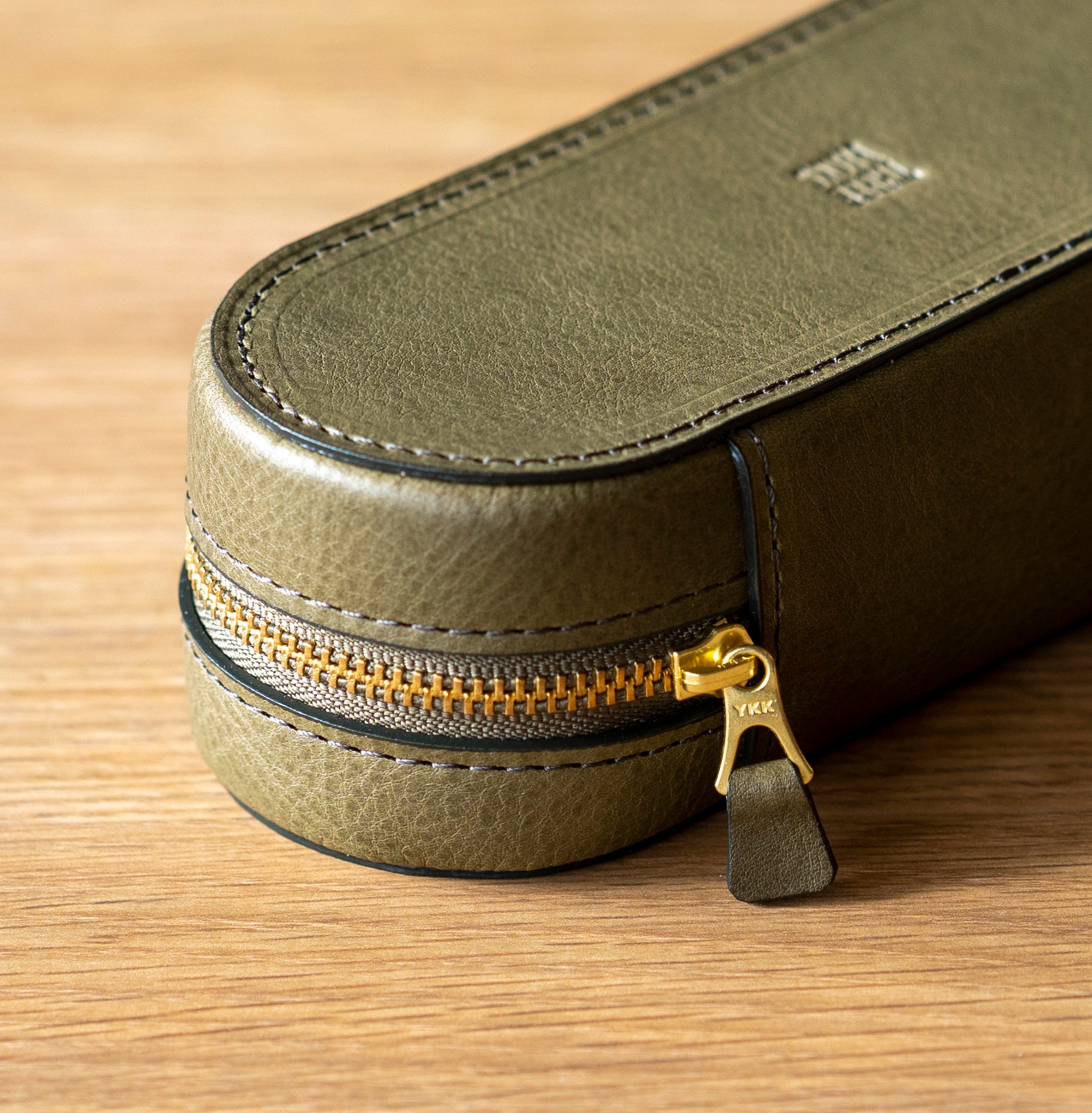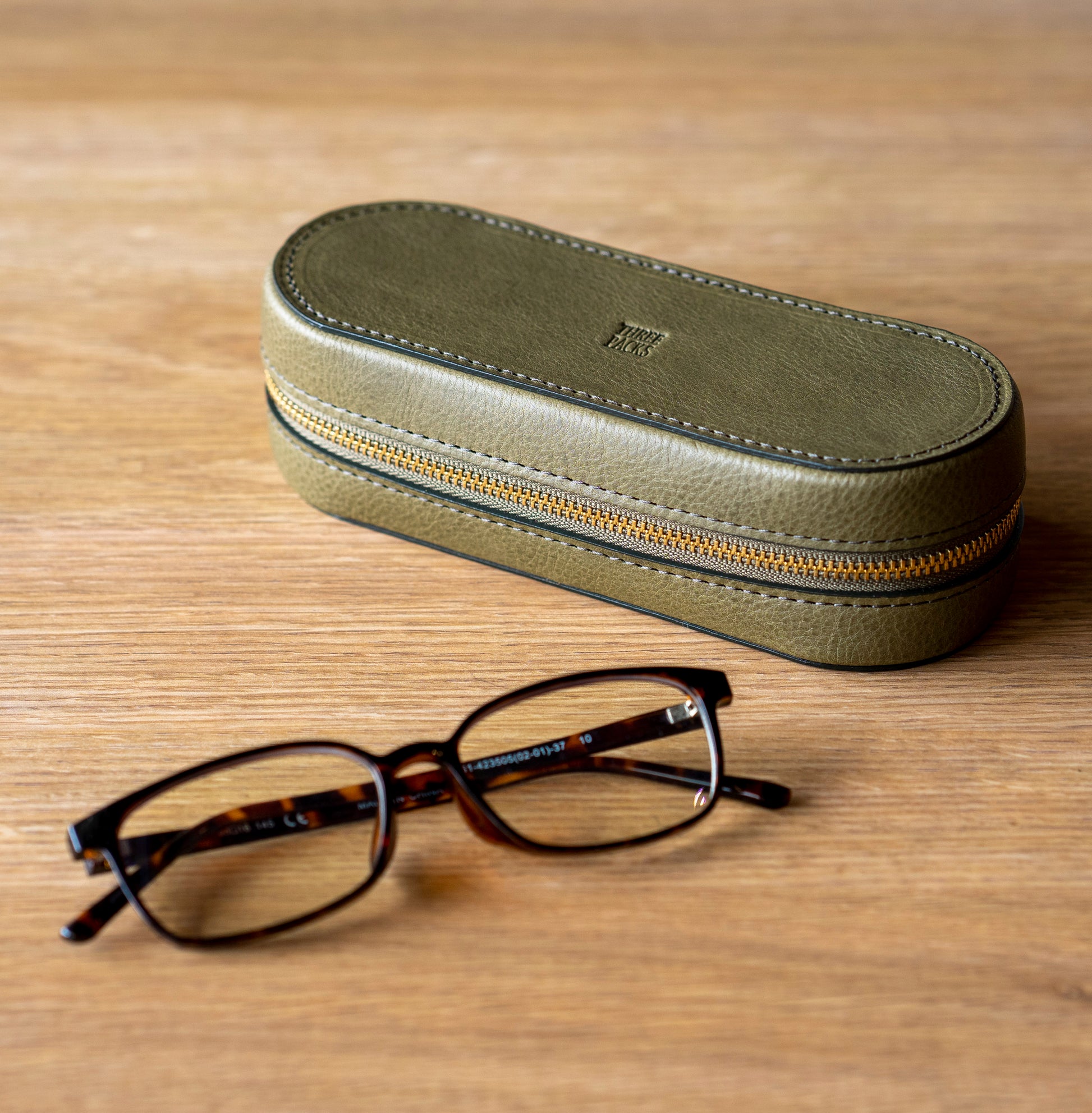 眼鏡を優しく包み込むソフトな人工スエードはファスナーを覆い隠すように設計しており、ファスナーの金属部分でメガネを傷つけないよう配慮をしています。