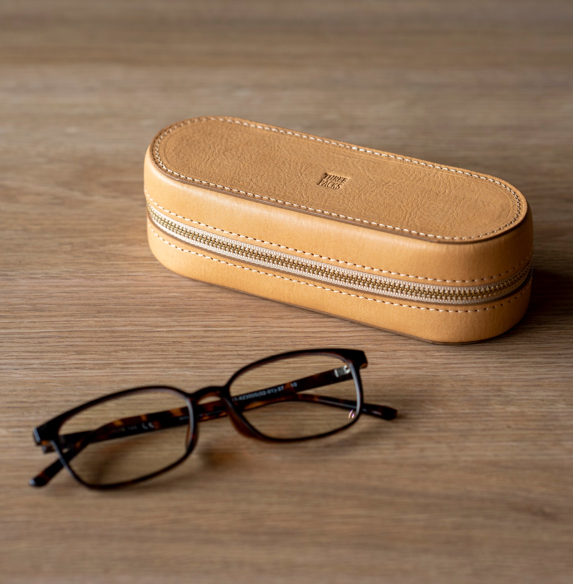 眼鏡を優しく包み込むソフトな人工スエードはファスナーを覆い隠すように設計しており、ファスナーの金属部分でメガネを傷つけないよう配慮をしています。