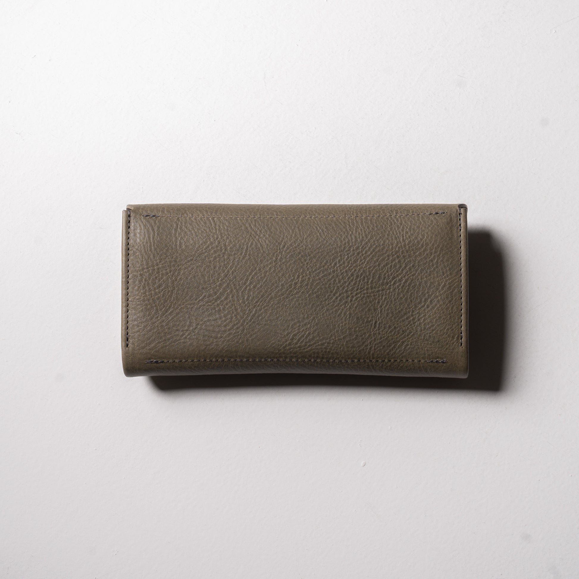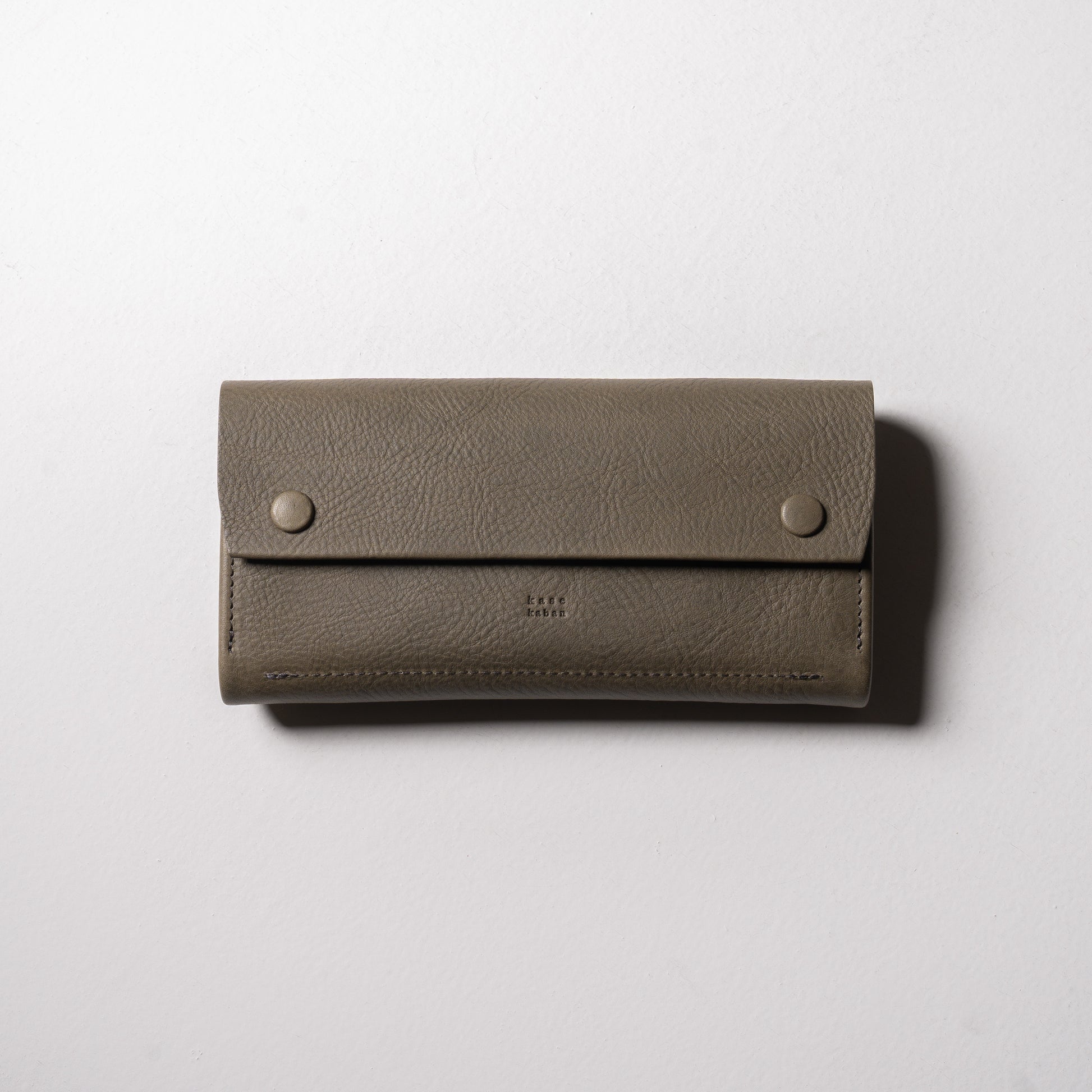 【金具を隠した一枚革】ふっくらと包み込む、くるみホックの長財布。イタリア革 <グリージオ>