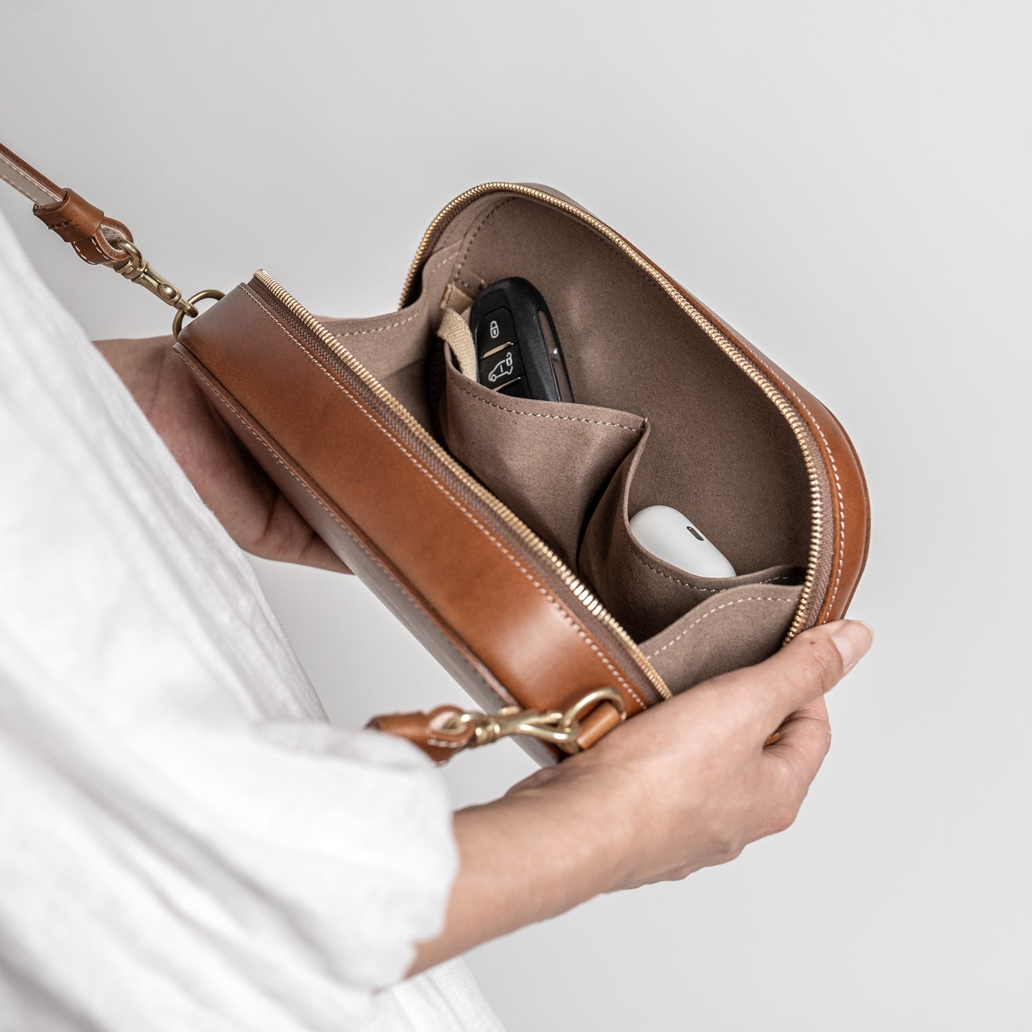 その佇まいは、身につける「ハードケース」。 外縫いで仕立てた、美しい曲線の宝箱。