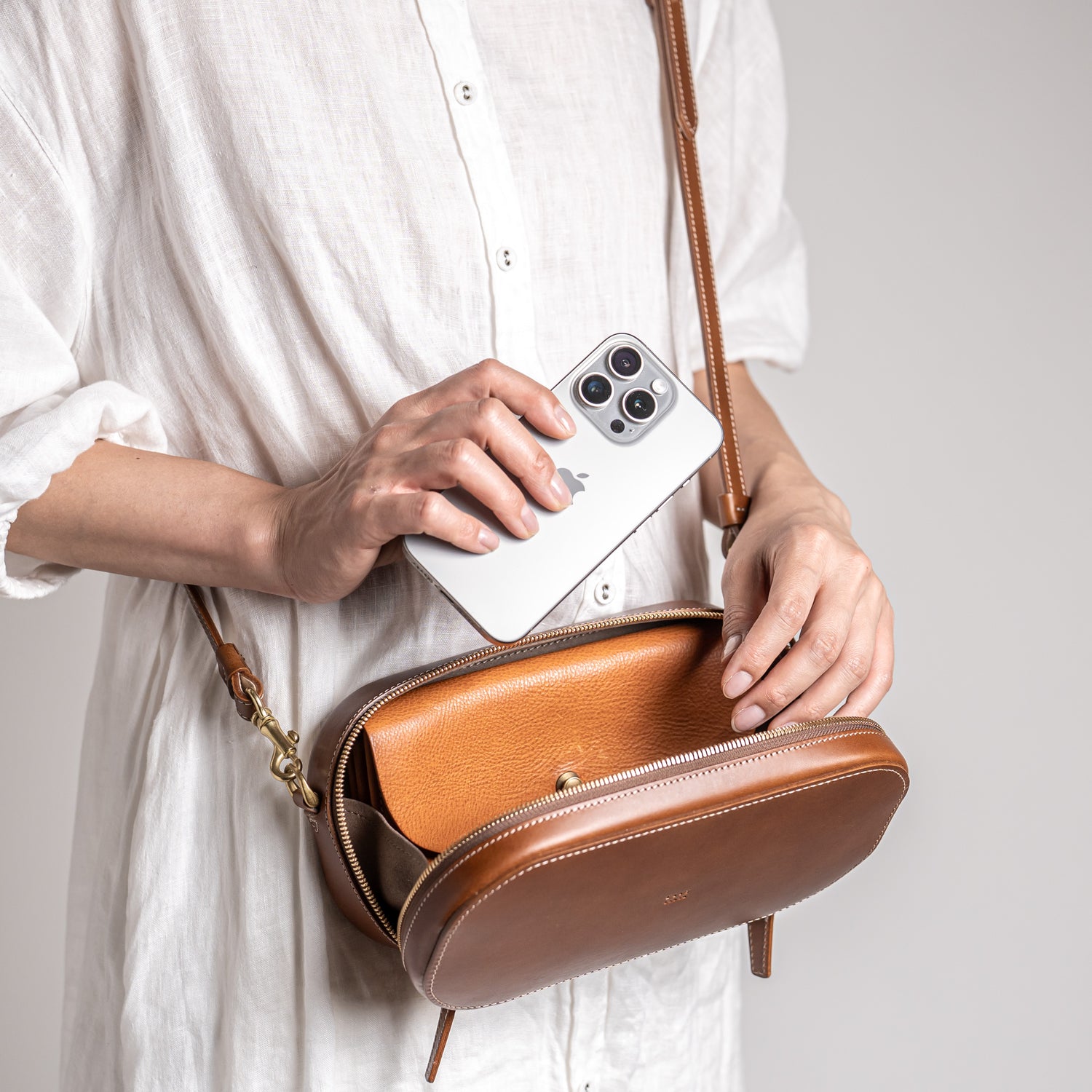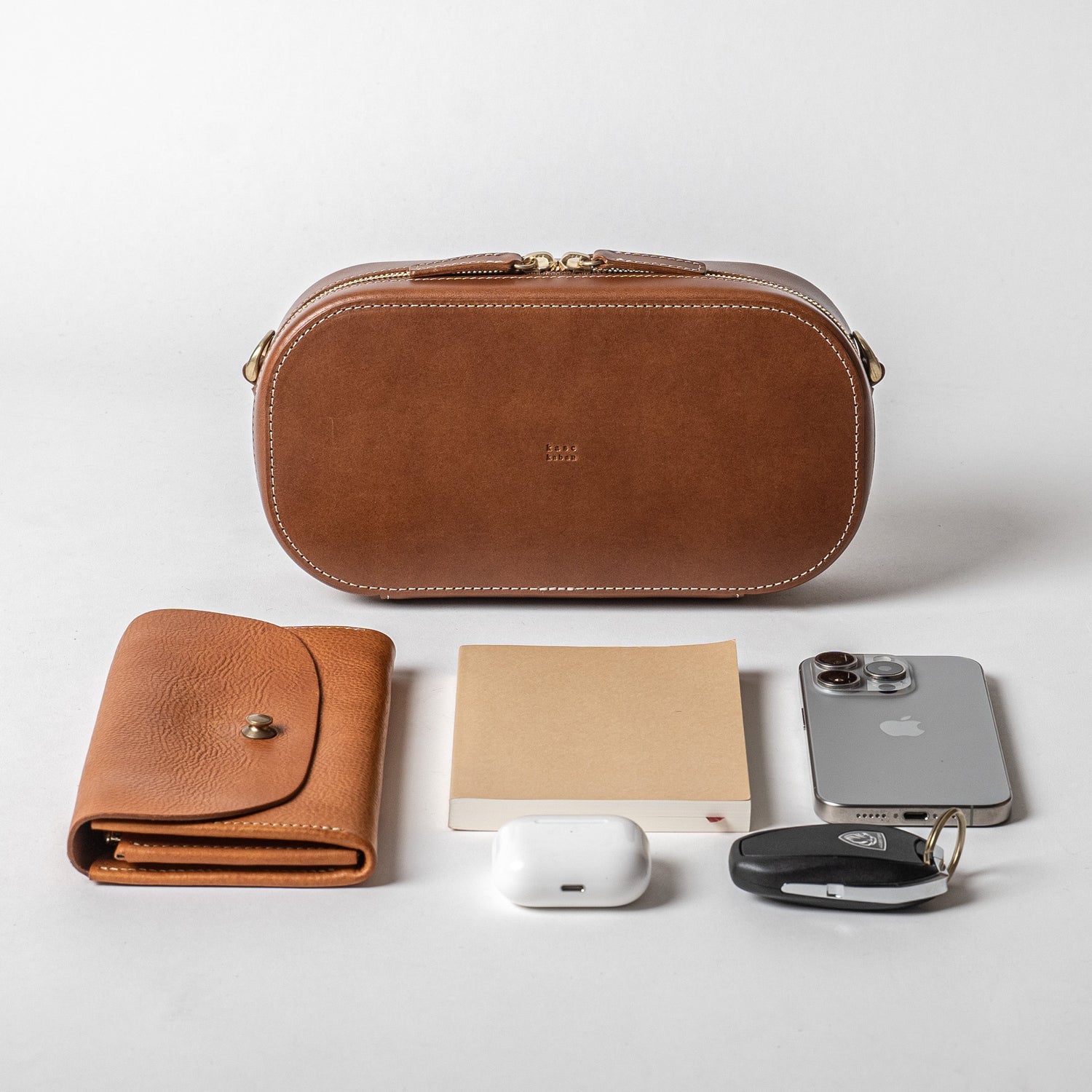 さらにマチ幅(奥行き)もしっかりあるため、スマートフォン、キーケース、リップクリームなど、現代の必需品(エッセンシャル)が無理なく収まります。
