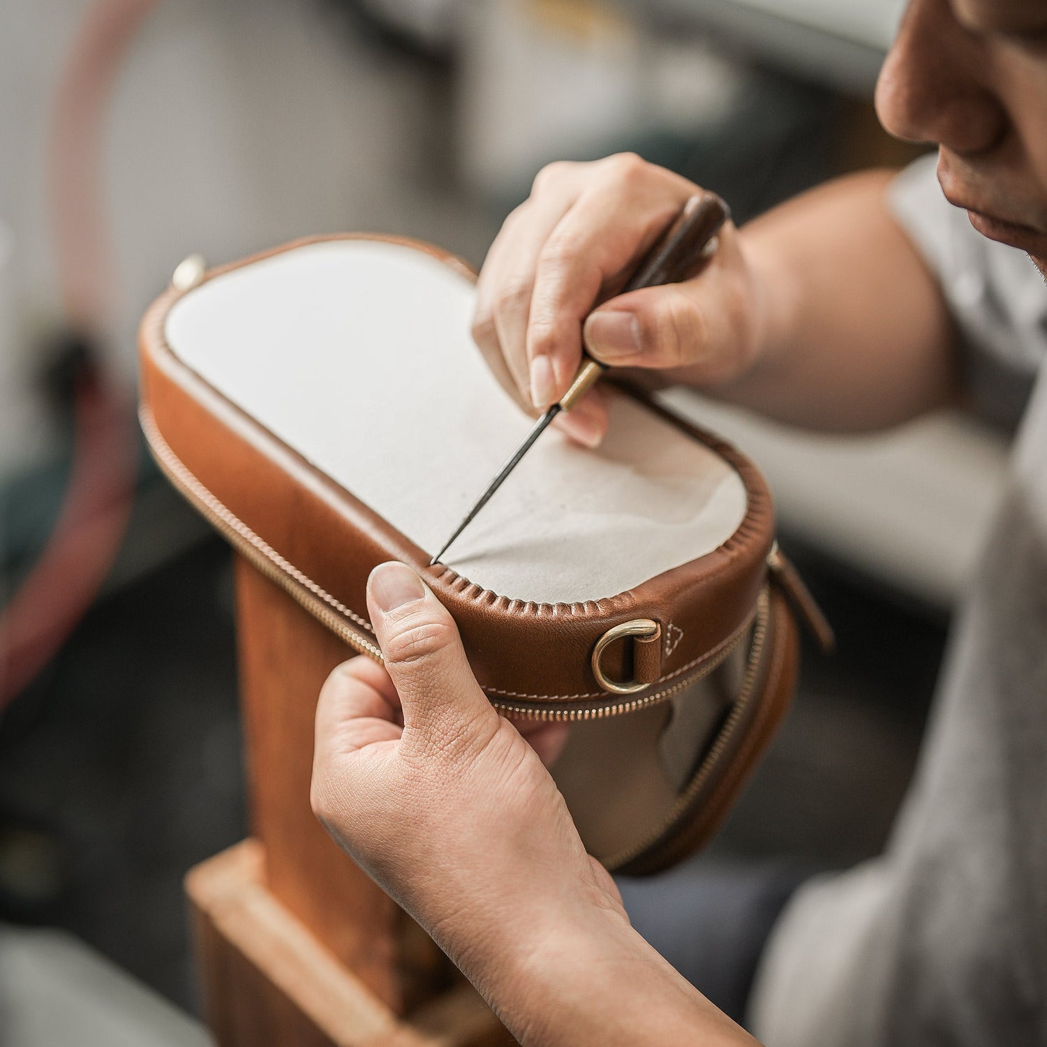 「木型」を使って革を立体的に成型することで、カチッとした強度と、角のない優しい丸みを両立させました。