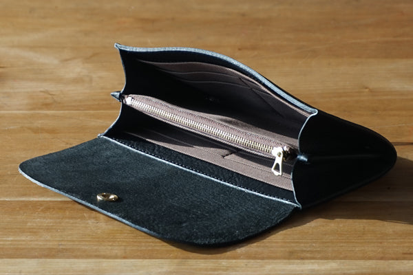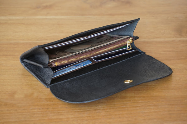 一枚革を繋ぎ目なく使用し、長くご愛用いただける長財布に仕立てました。