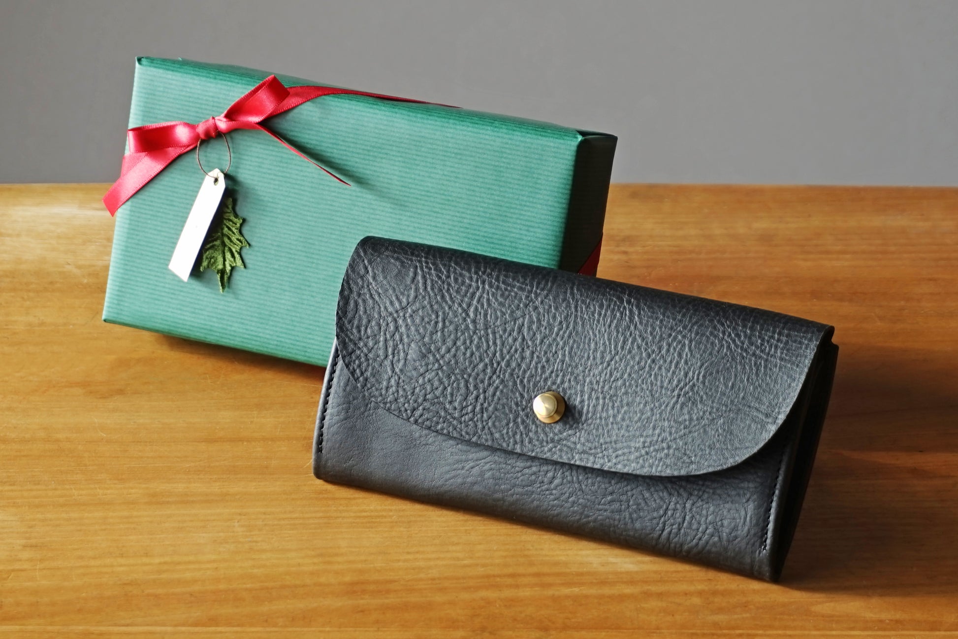一枚革で仕立てた長財布 ブラック(ラッピング無料) ギフト