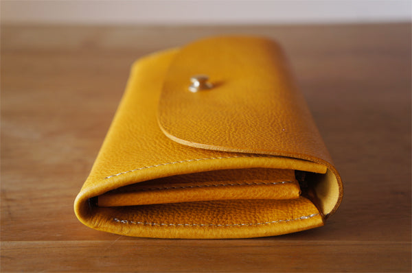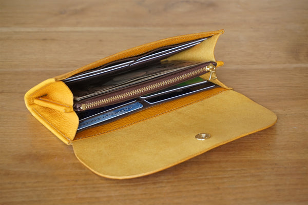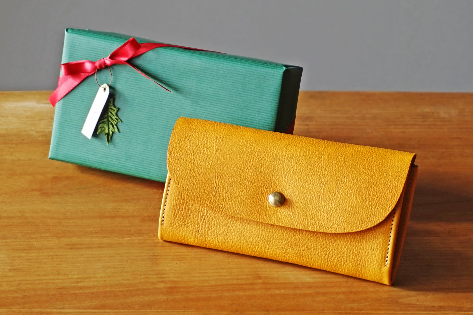 一枚革で仕立てた長財布 イエロー (ラッピング無料) ギフト