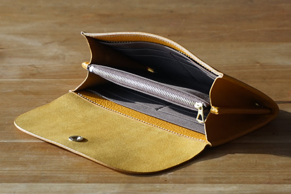 一枚革を繋ぎ目なく使用し、長くご愛用いただける長財布に仕立てました。