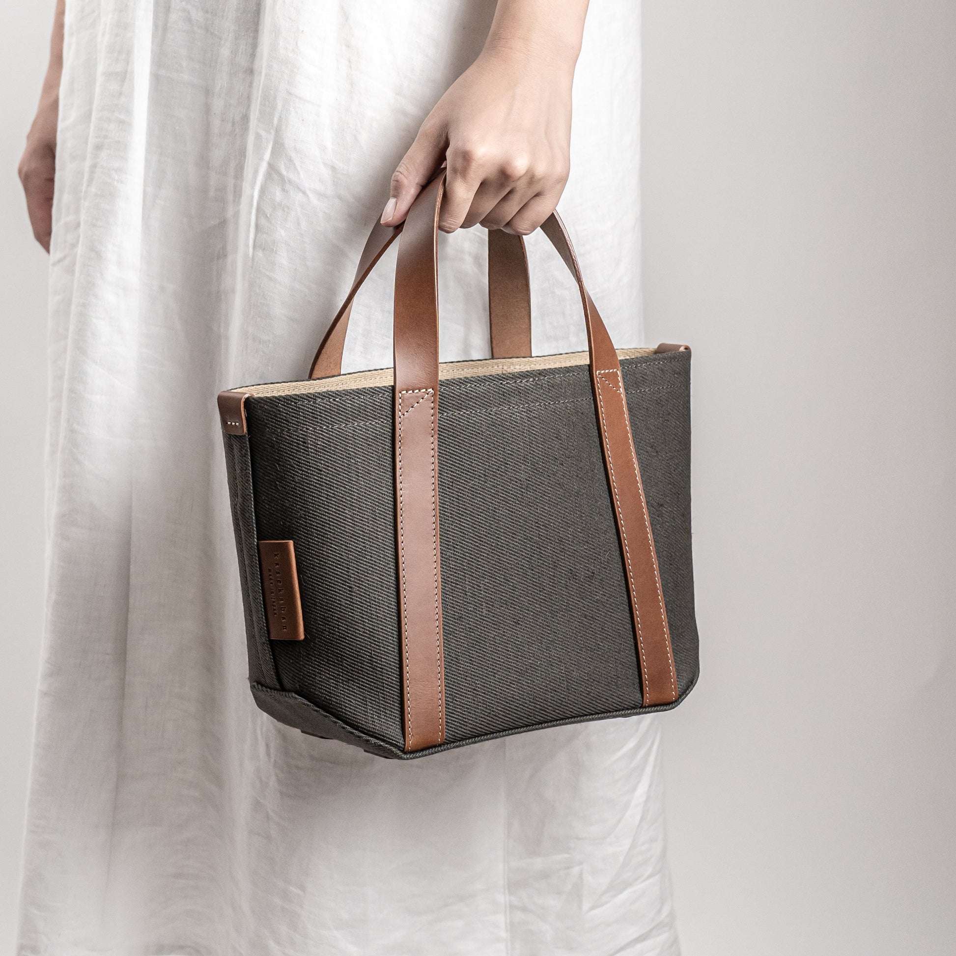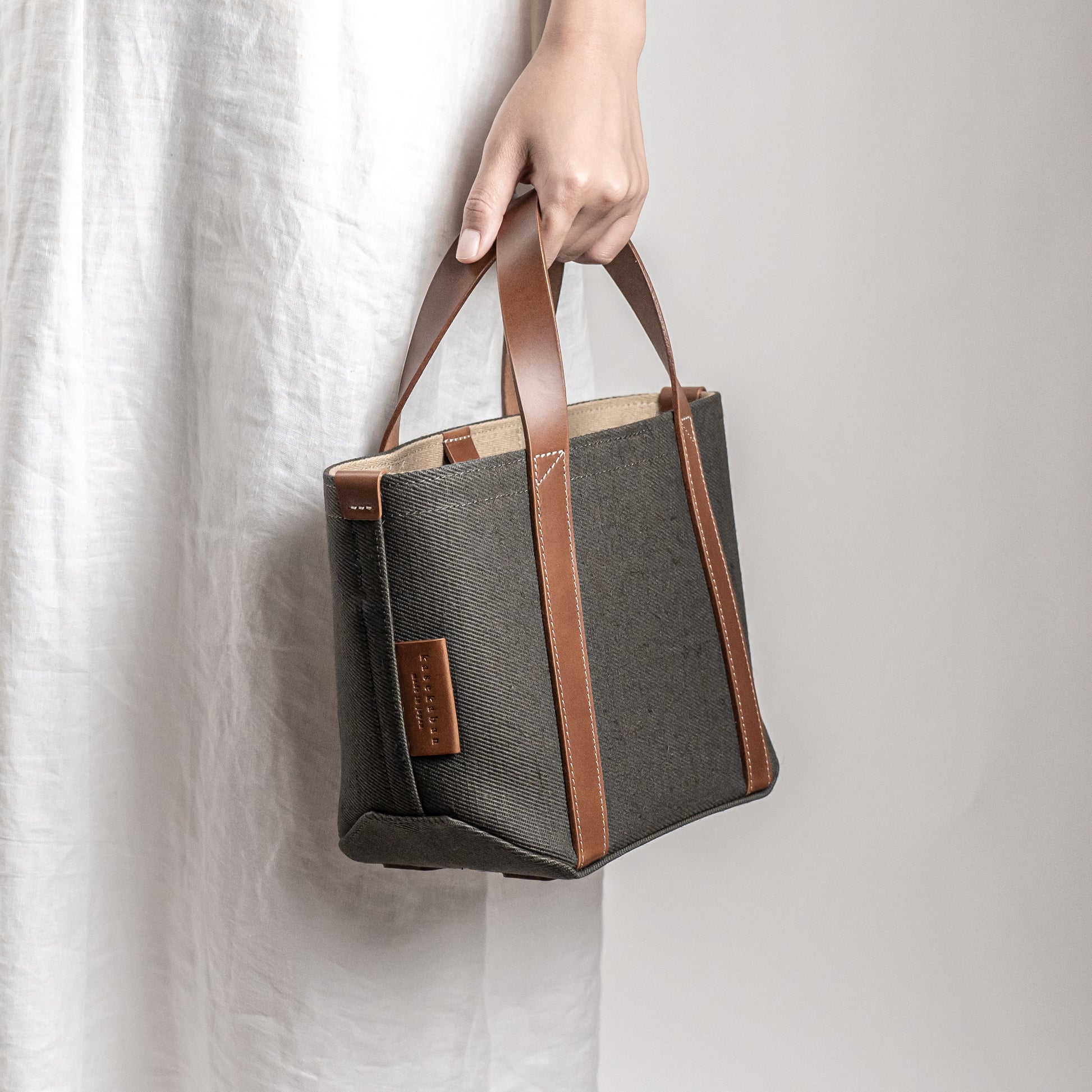 バッグ本体とハンドルで構成されたミニマムなデザインは男女問わずに毎日お使いいただけます。ちょっと変わった底の形状や、ハンドルの三角補強ステッチも魅力です。