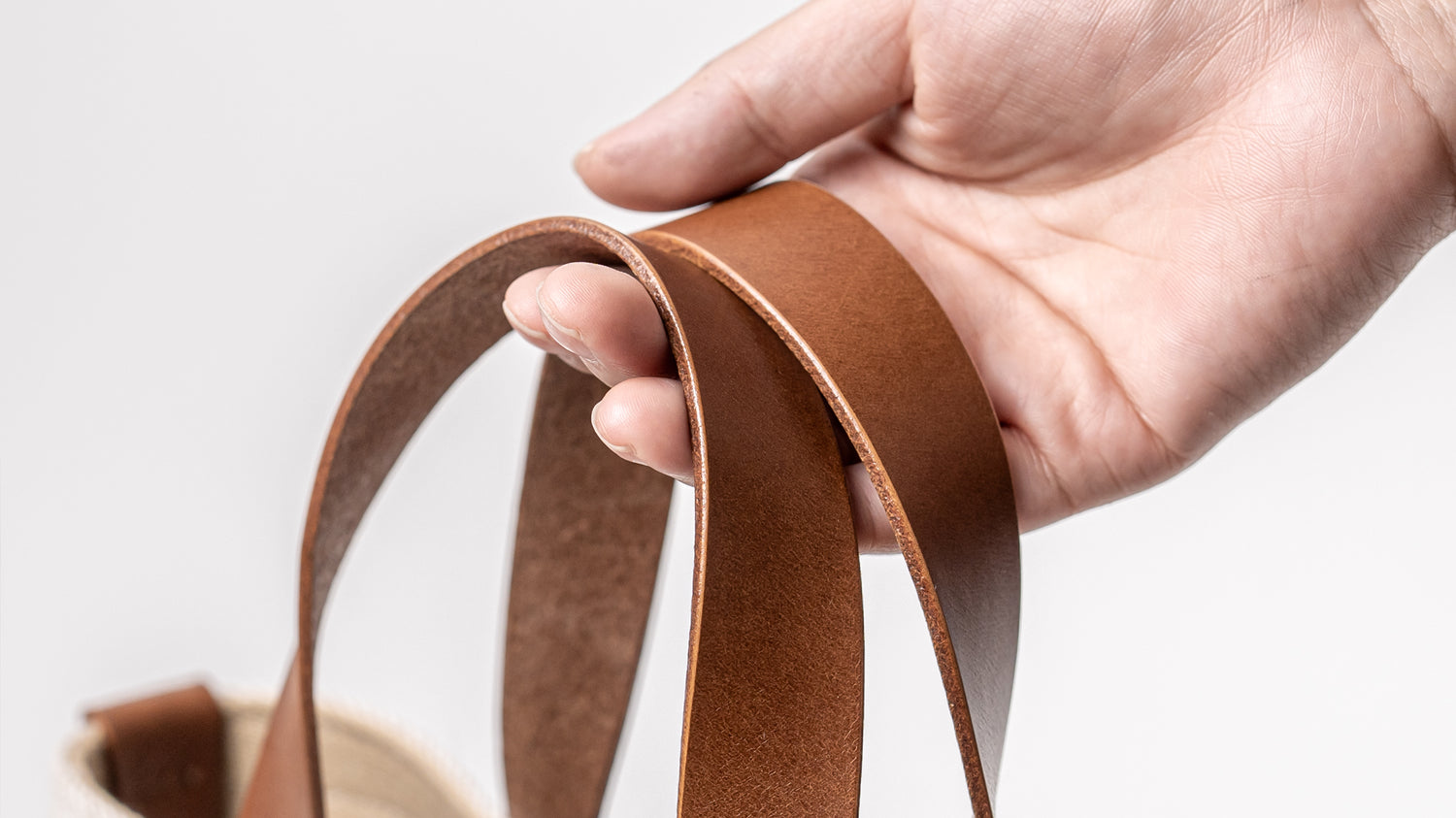 ハンドルや底足などにイタリアのトスカーナ地方にある名門タンナー『ワルピエ社』によって植物性フルタンニンなめしを施されたヌメ革『ブッテーロ』を使用しています。オイルを多く含んだことで、使い込むほどに艶が増し、美しい経年変化を愉しめます。その経年変化の美しさからヌメ革の王様とも呼ばれています。