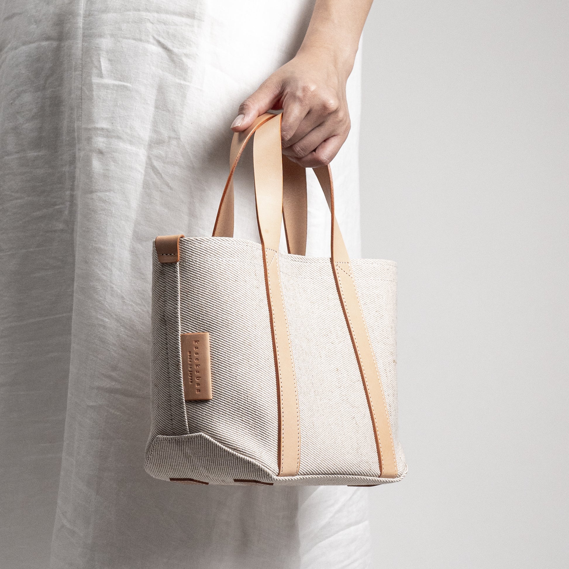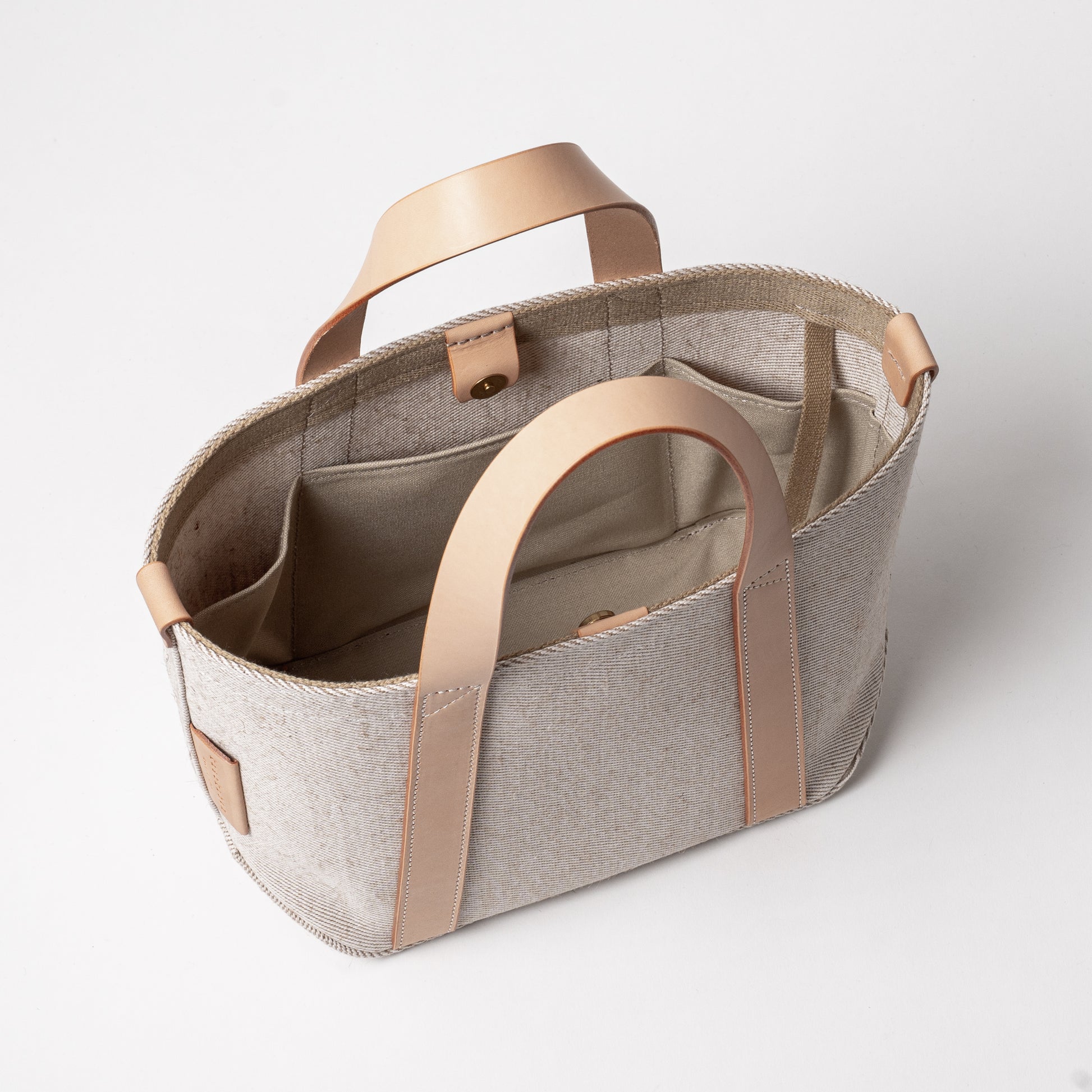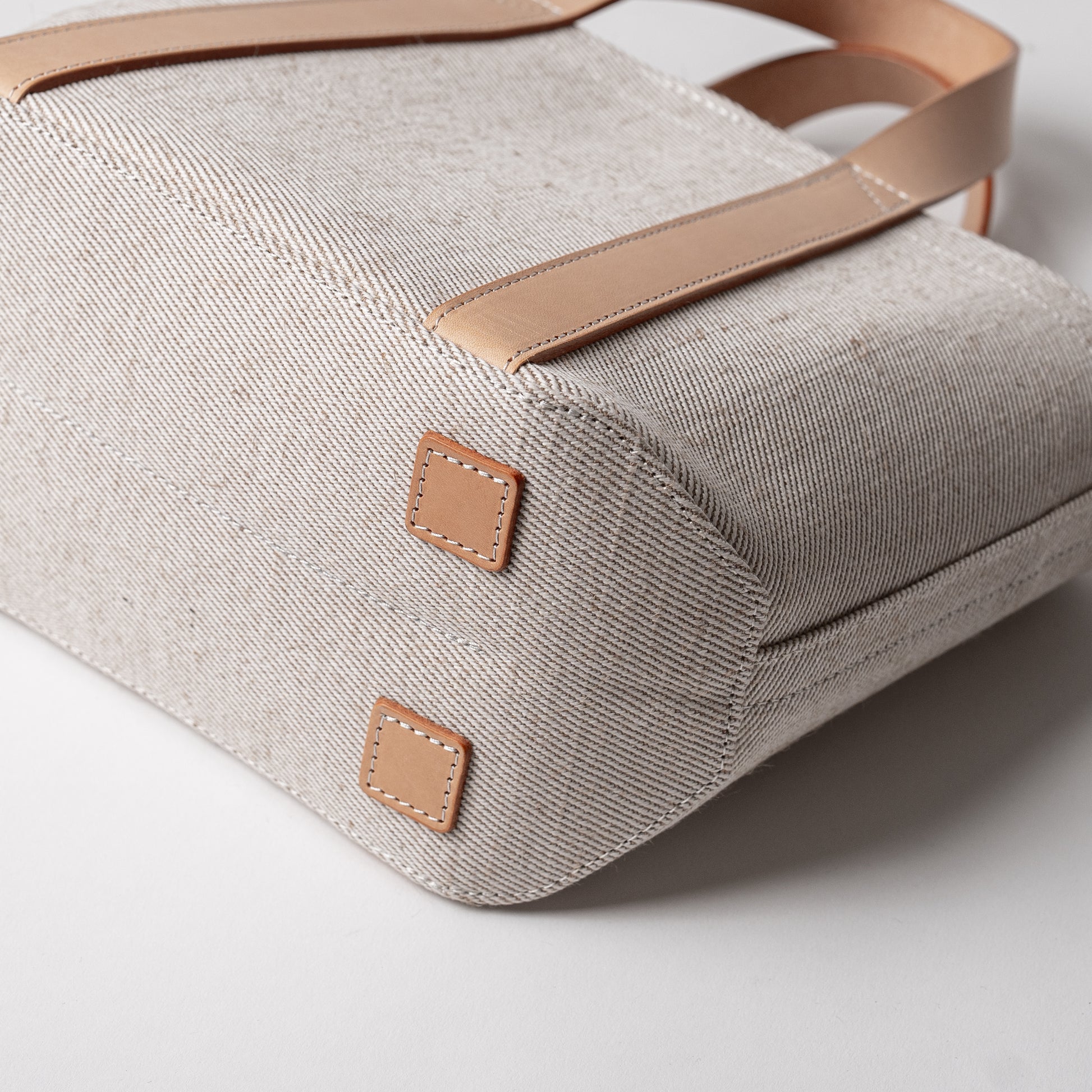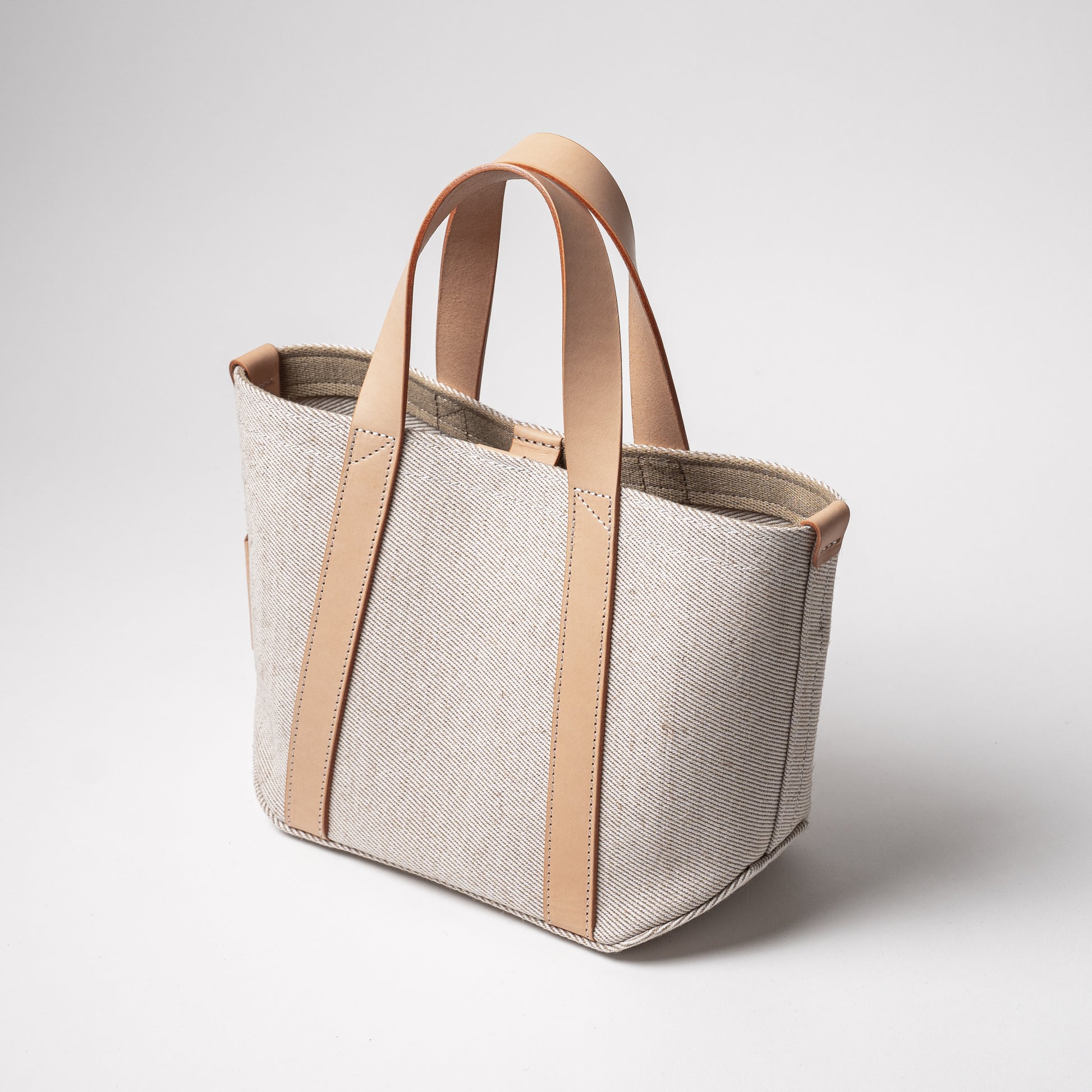 レザーハンドル 倉敷の綿麻帆布とヌメ革で仕立てた 丈夫な軽量トートS <生成り ecru>