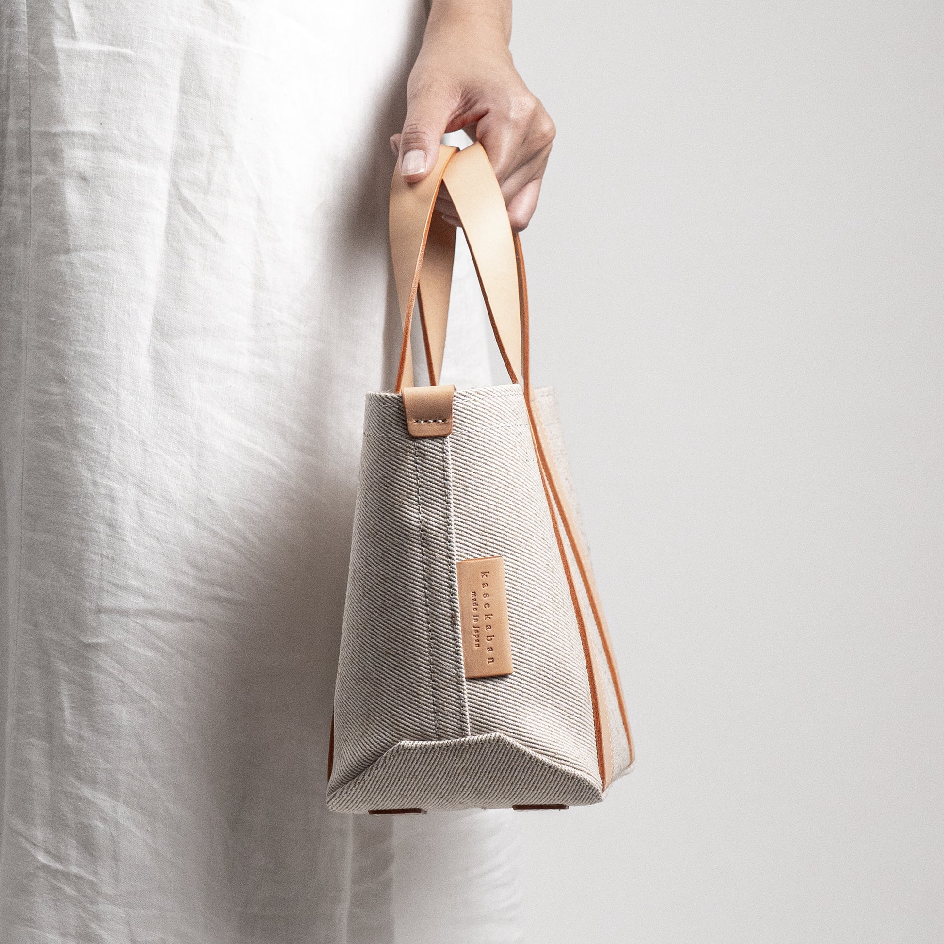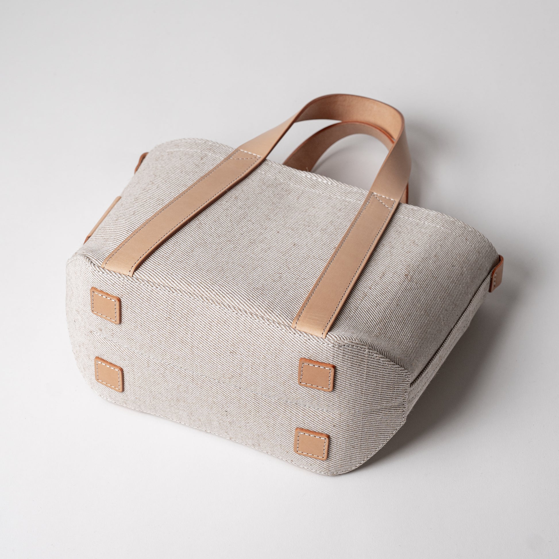 バッグ本体とハンドルで構成されたミニマムなデザインは男女問わずに毎日お使いいただけます。ちょっと変わった底の形状や、ハンドルの三角補強ステッチも魅力です。