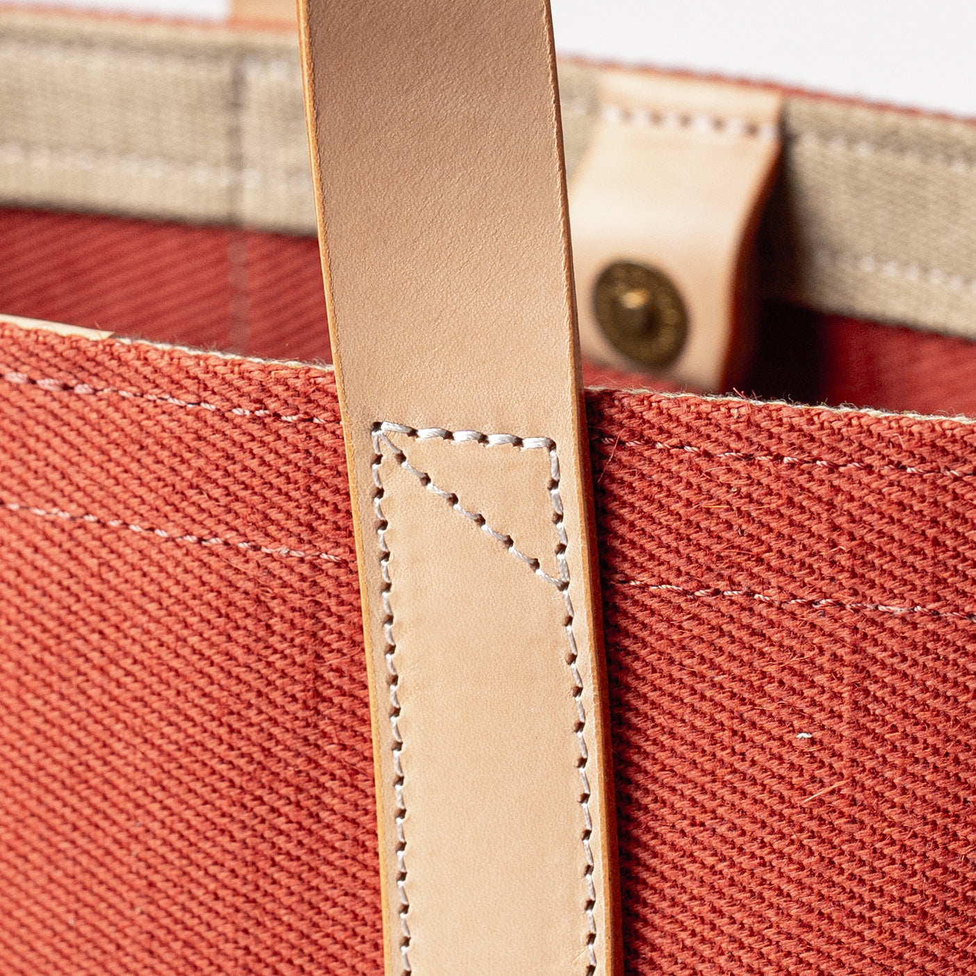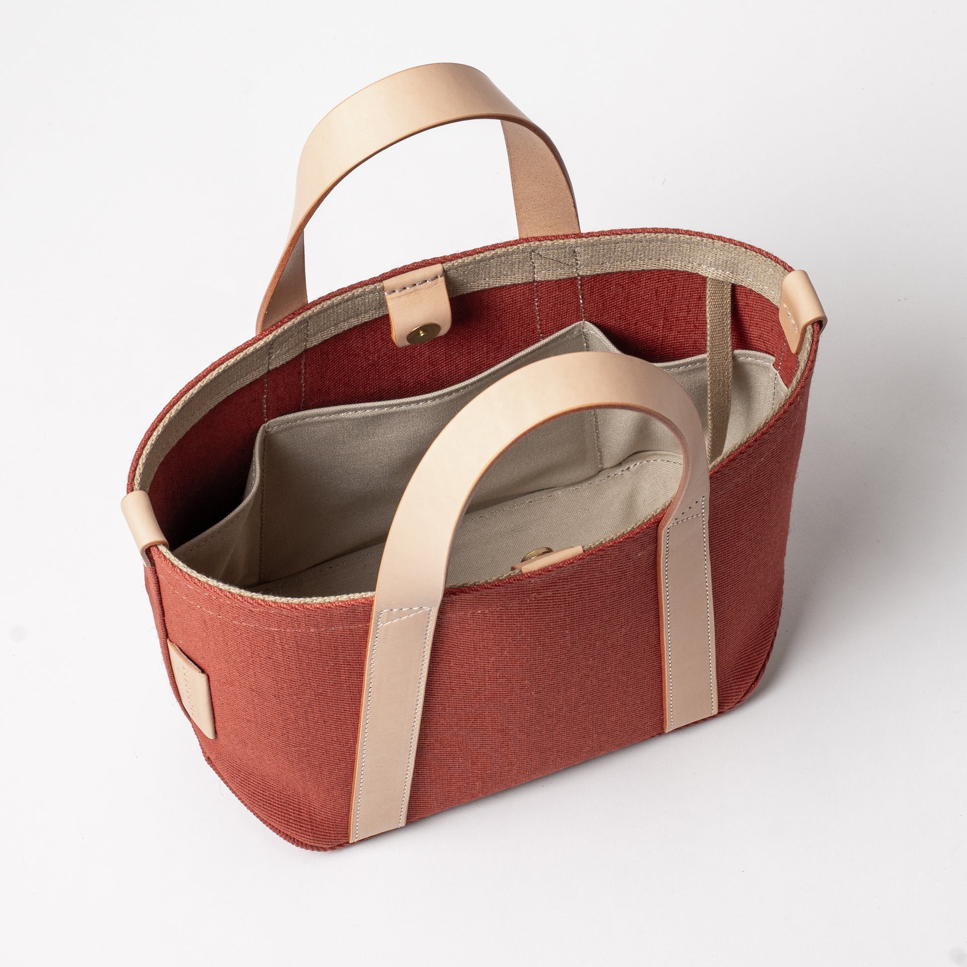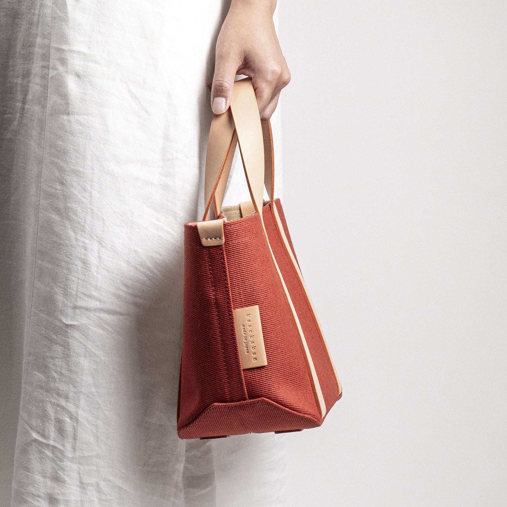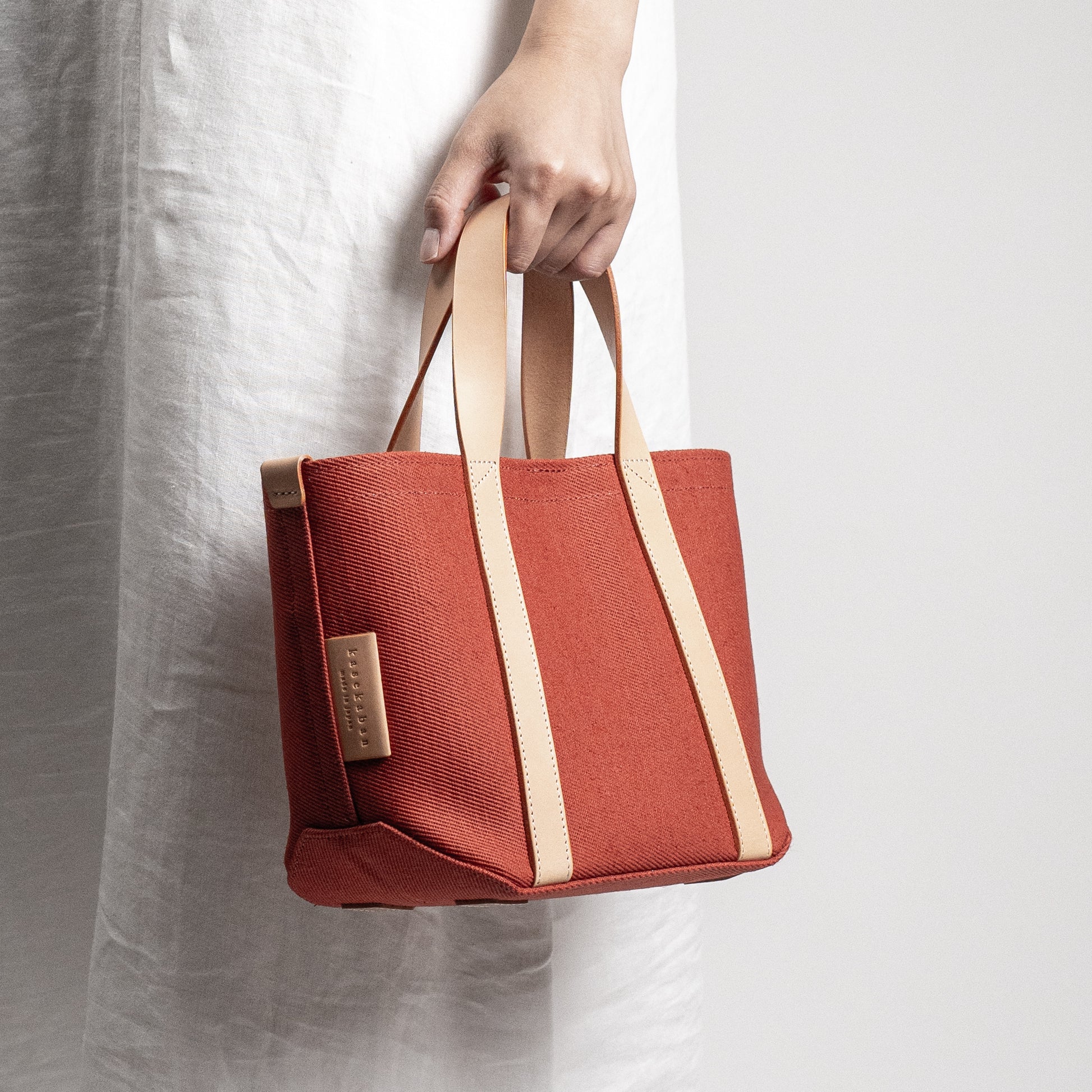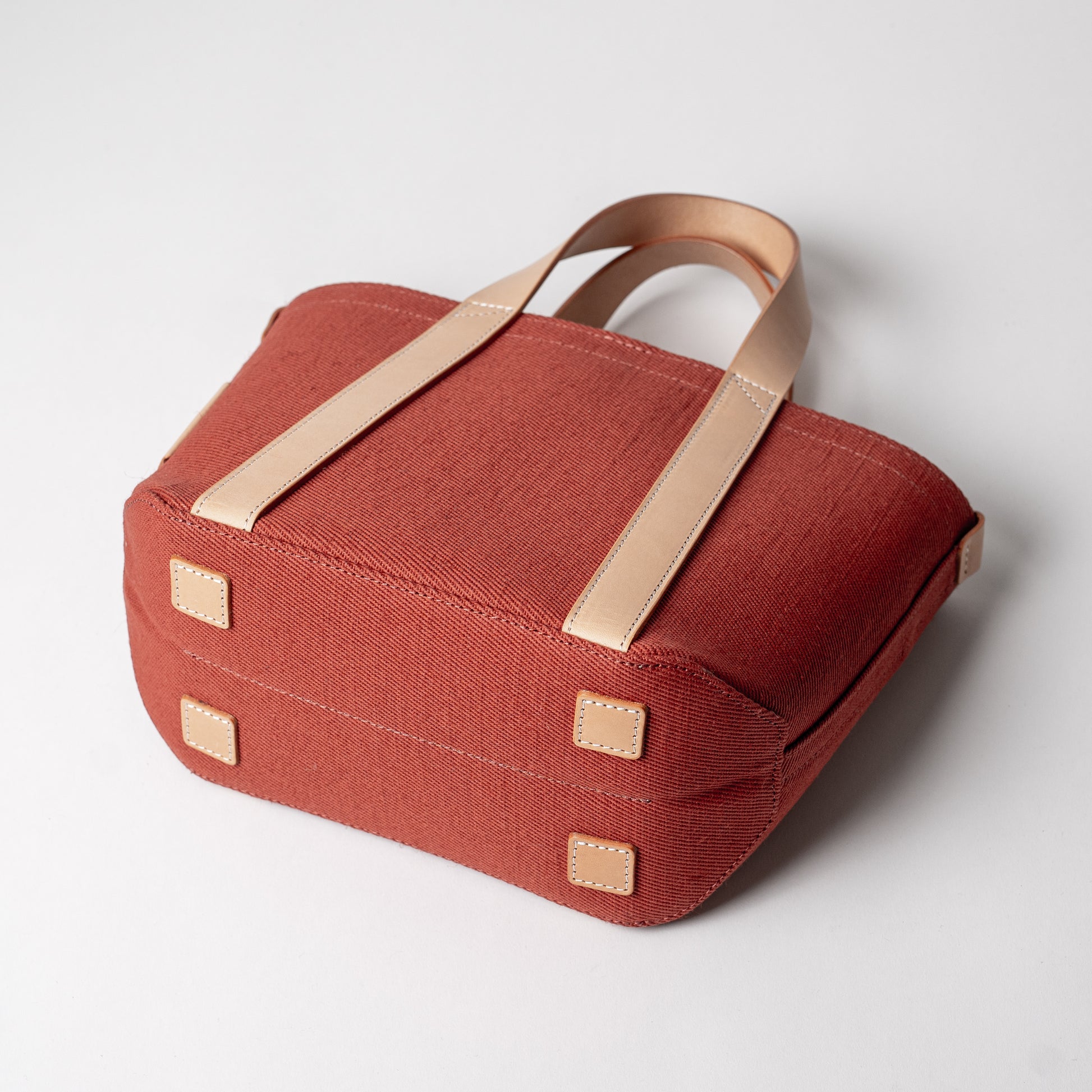 レザーハンドル 倉敷の綿麻帆布とヌメ革で仕立てた 丈夫な軽量トートS <テラコッタ terra cotta>