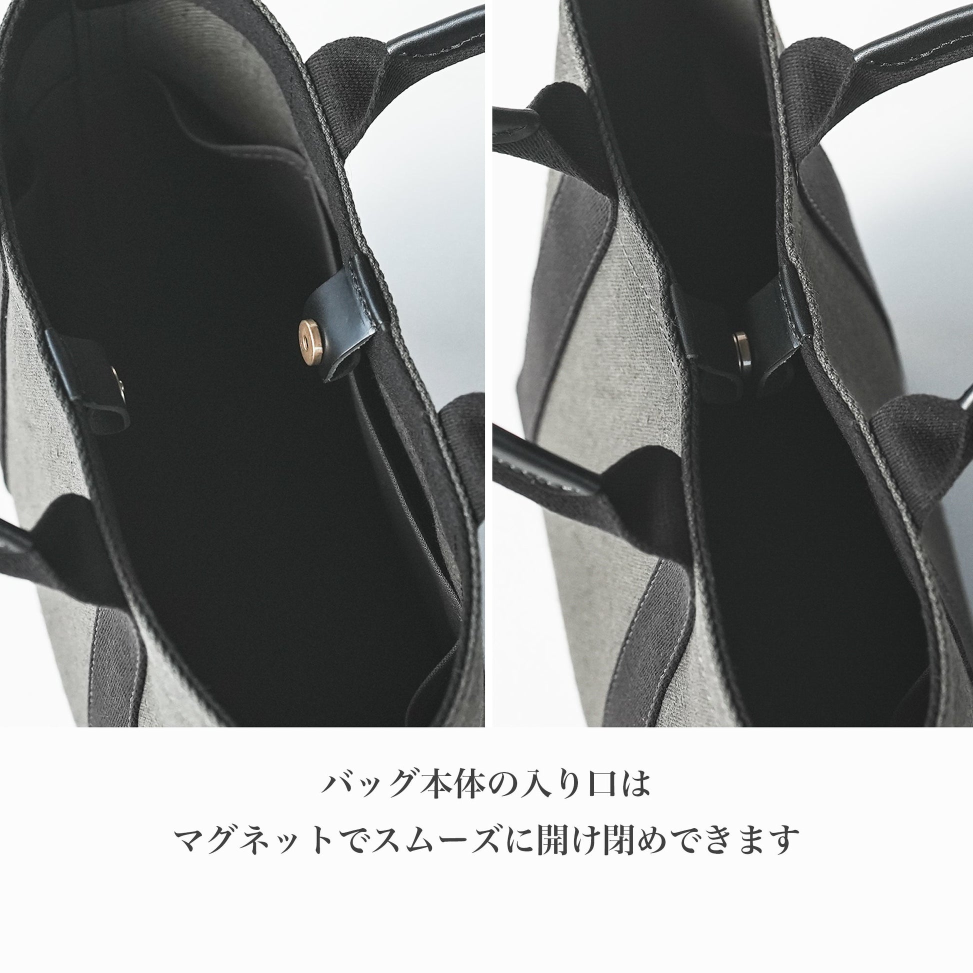 バッグ本体の入り口はマグネットでスムーズに開け閉めできます。