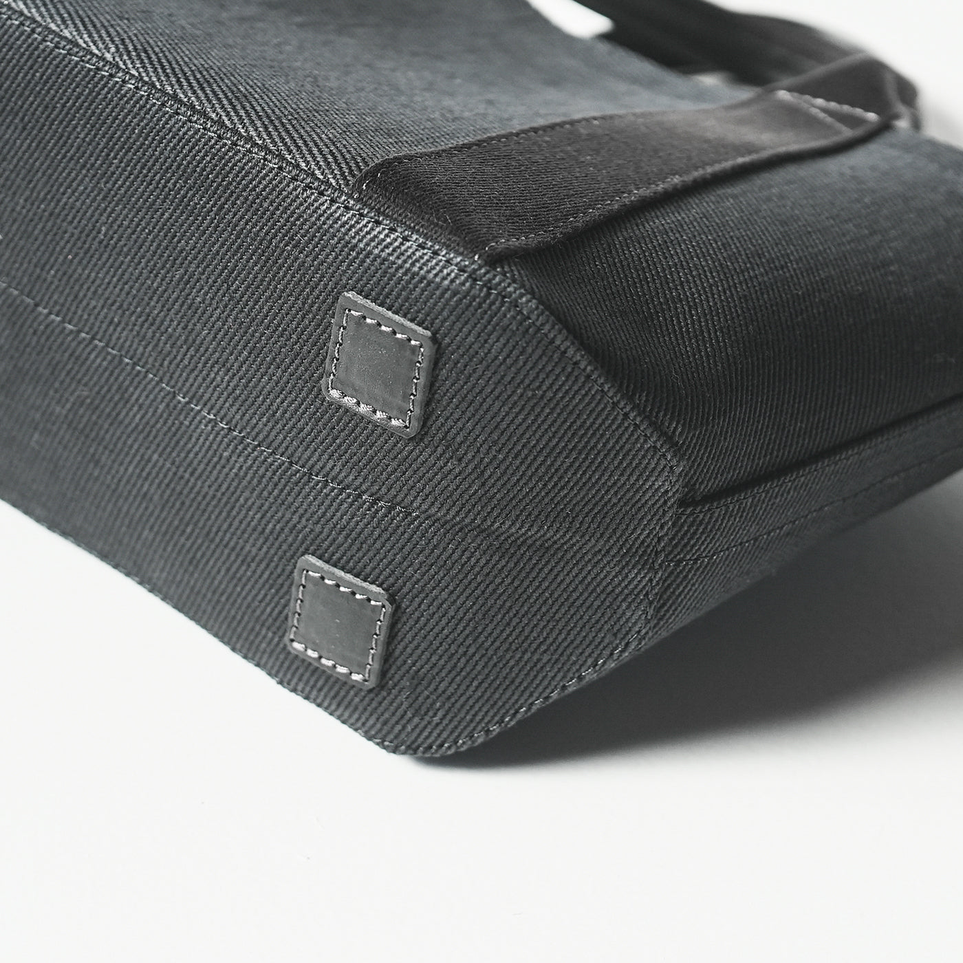 手で持つトートバッグだからこそハンドルにも拘りました。厚みとコシのある日本製アクリルテープに革を縫い付けることで、握りやすく、手に馴染んできます。また、一般的なアクリルテープと違い、バッグ本体と同じ綾織にすることで上品な雰囲気が魅力です。