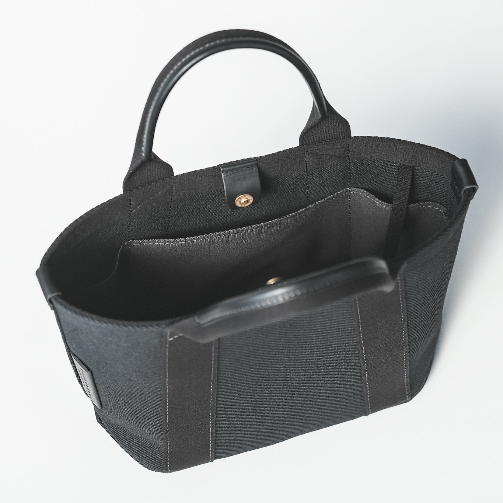 倉敷の綿麻帆布とヌメ革で仕立てた 丈夫で軽量なトートS <ブラック black>